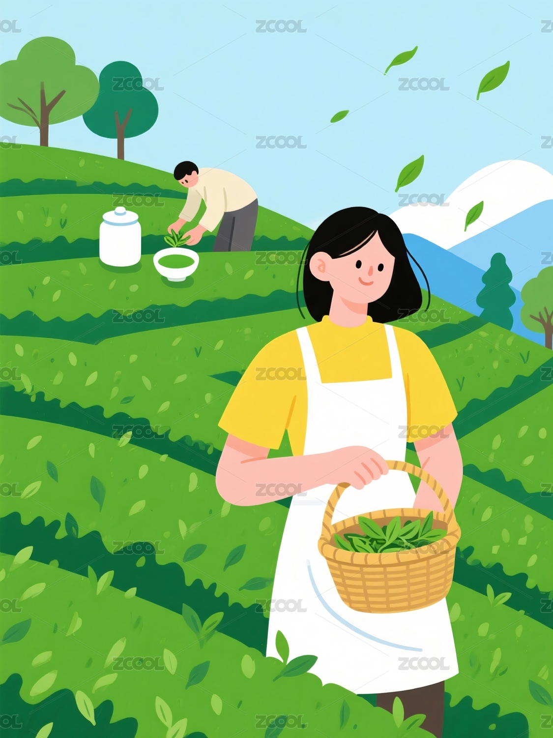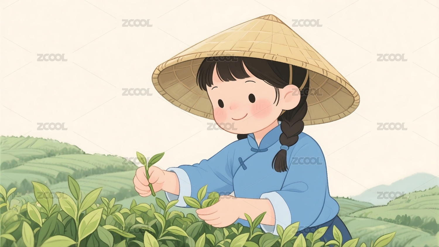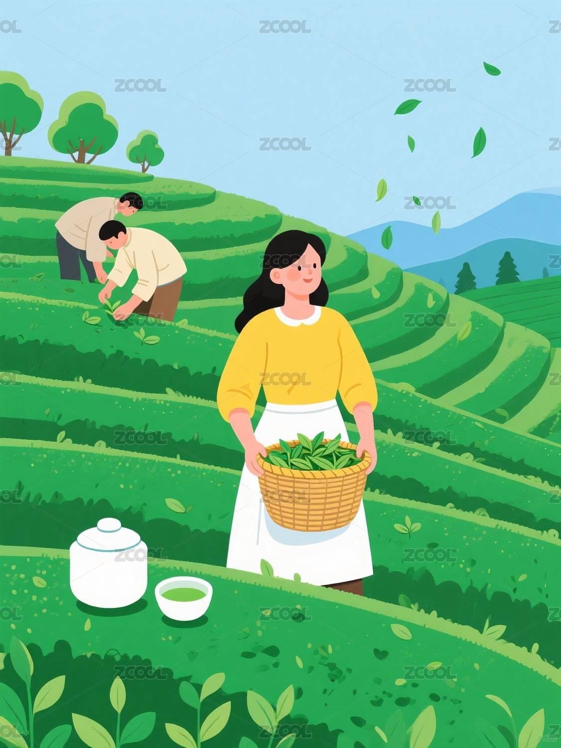 DXCZ202404,传统,制茶,茶叶,捻茶,搓捻,扁平,插画,卡通,茶农