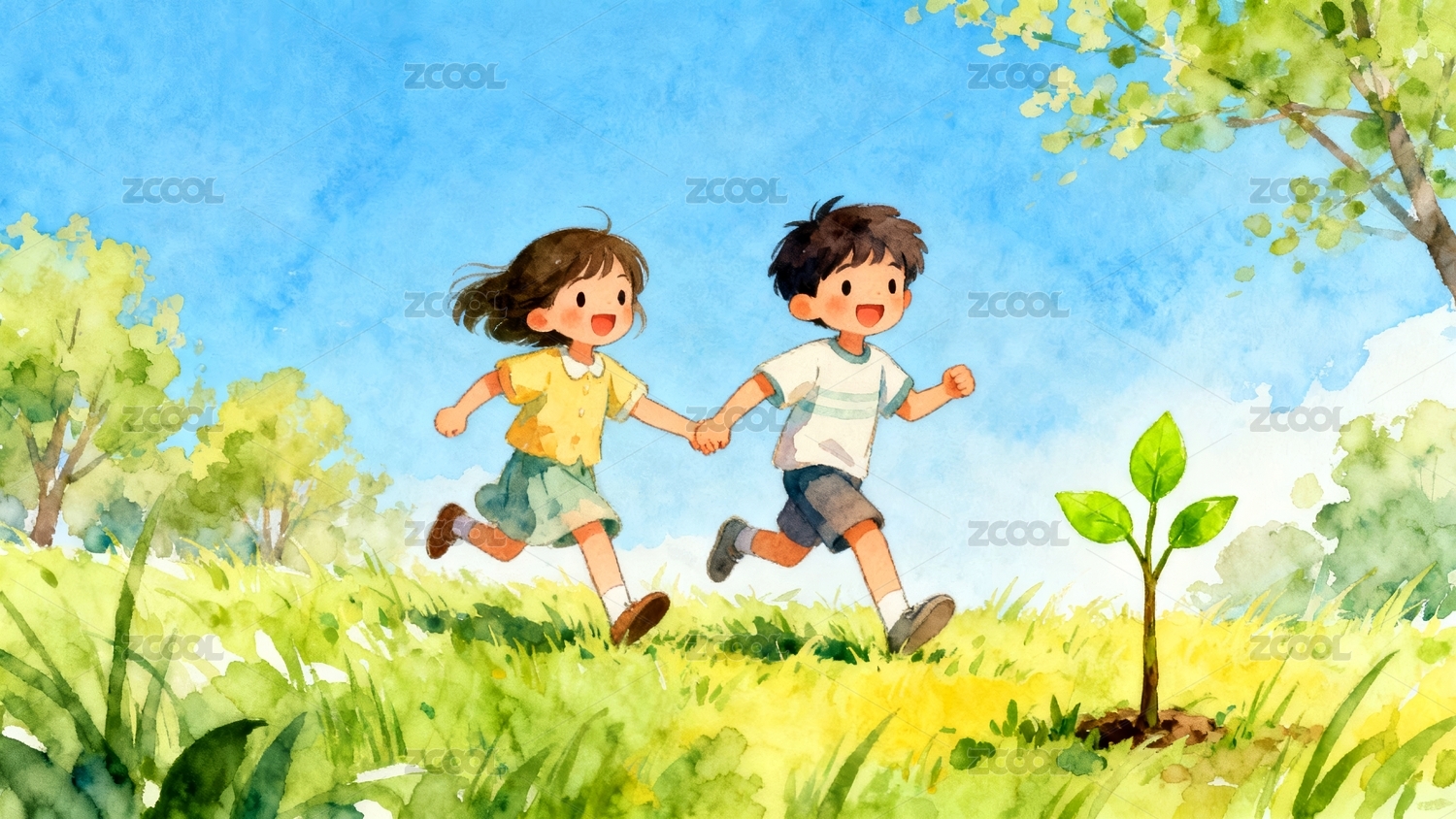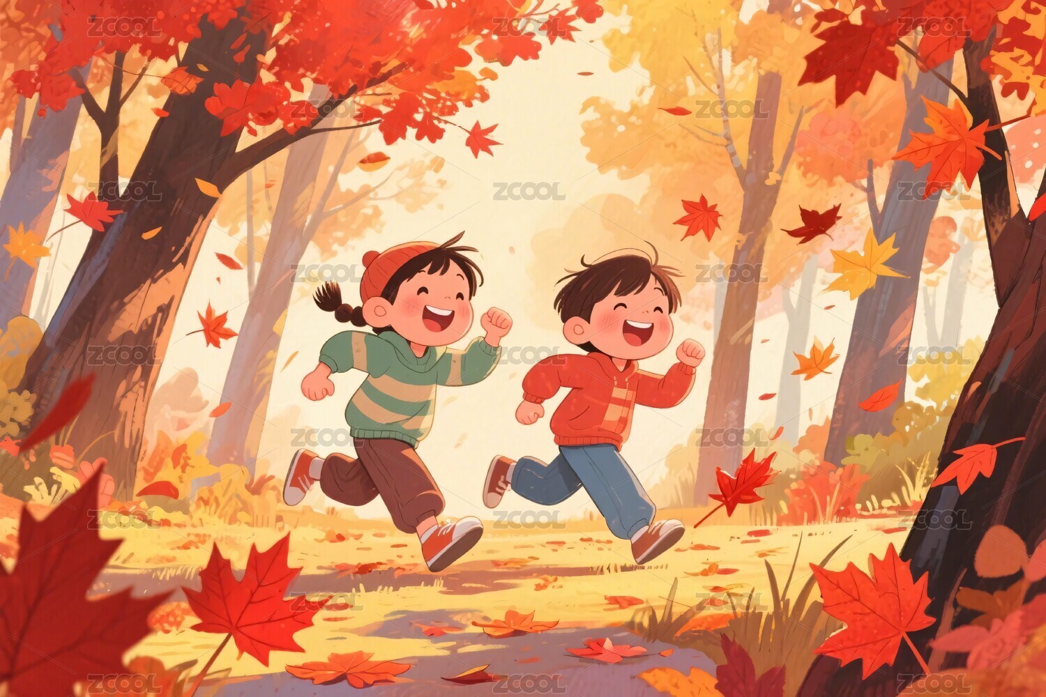 秋天秋游立秋秋分户外活动运动卡通漫画插画