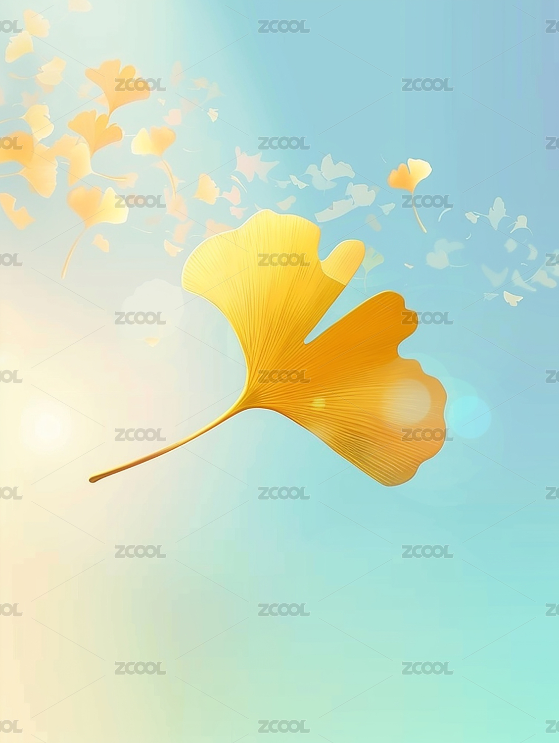 白天晴朗绿色草地上空飘落的叶子插画绘画