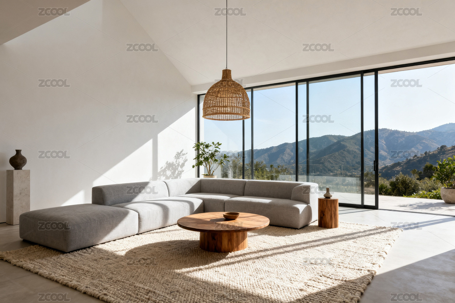 现代客厅与山景视野