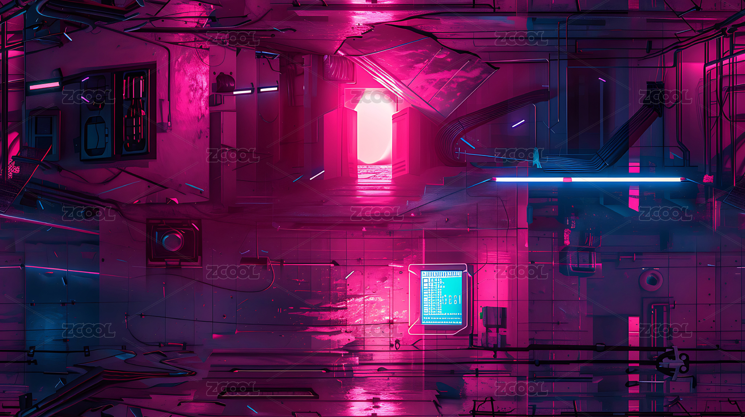 霓虹灯照亮的未来科技走廊