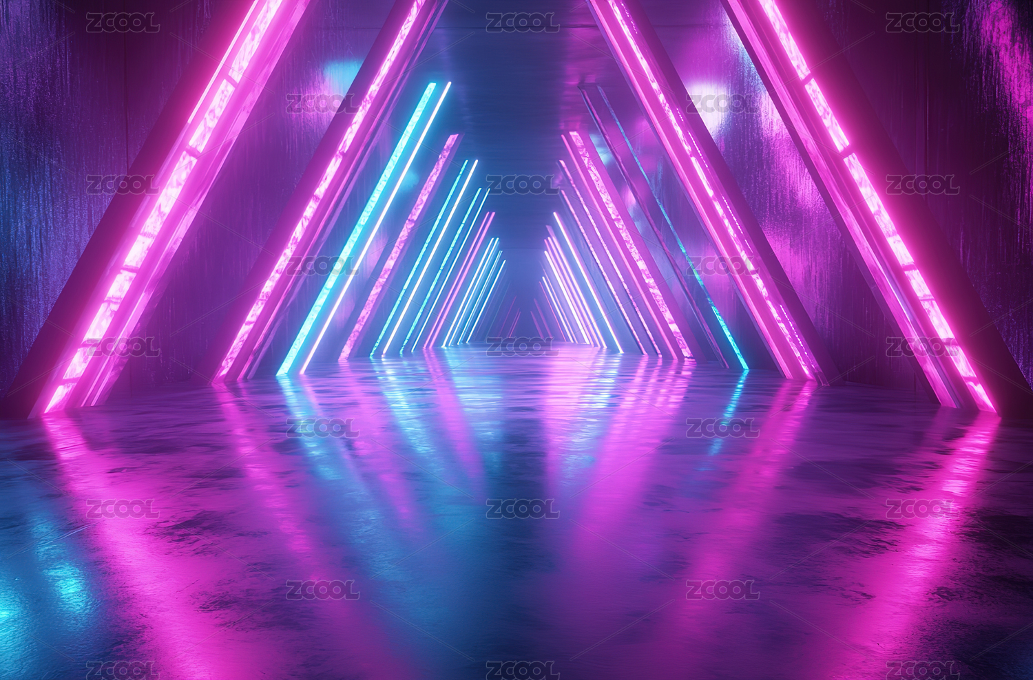 霓虹灯线条场景,舞台背景赛博科技氛围感
