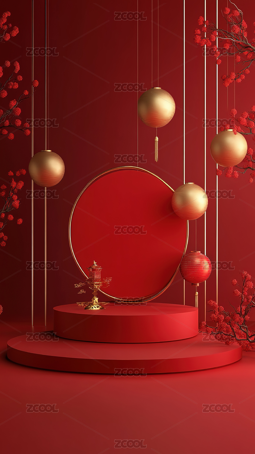 3D春节红色灯笼圆形电商产品展台