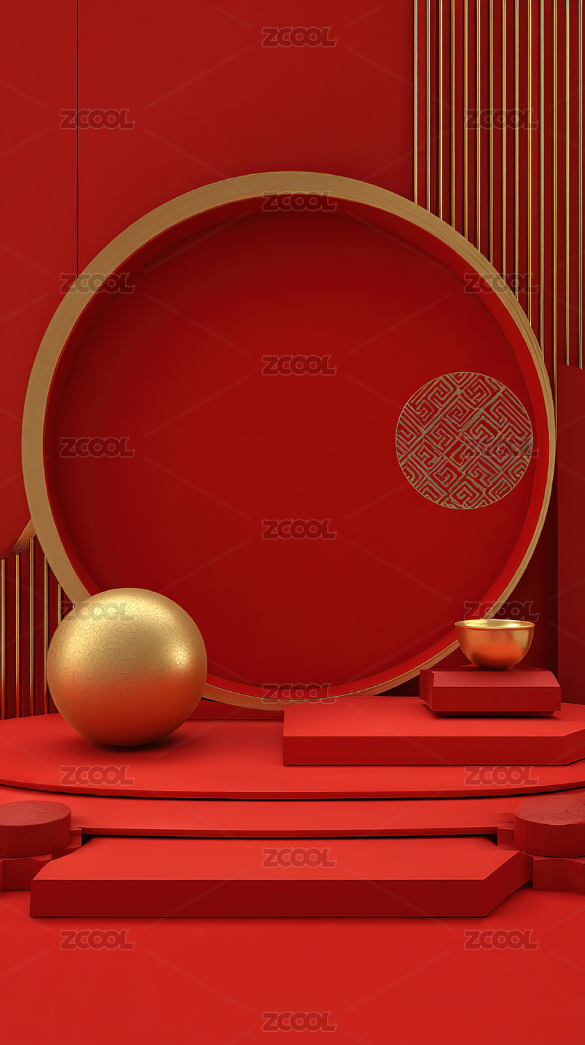 春节节日展示台红色背景