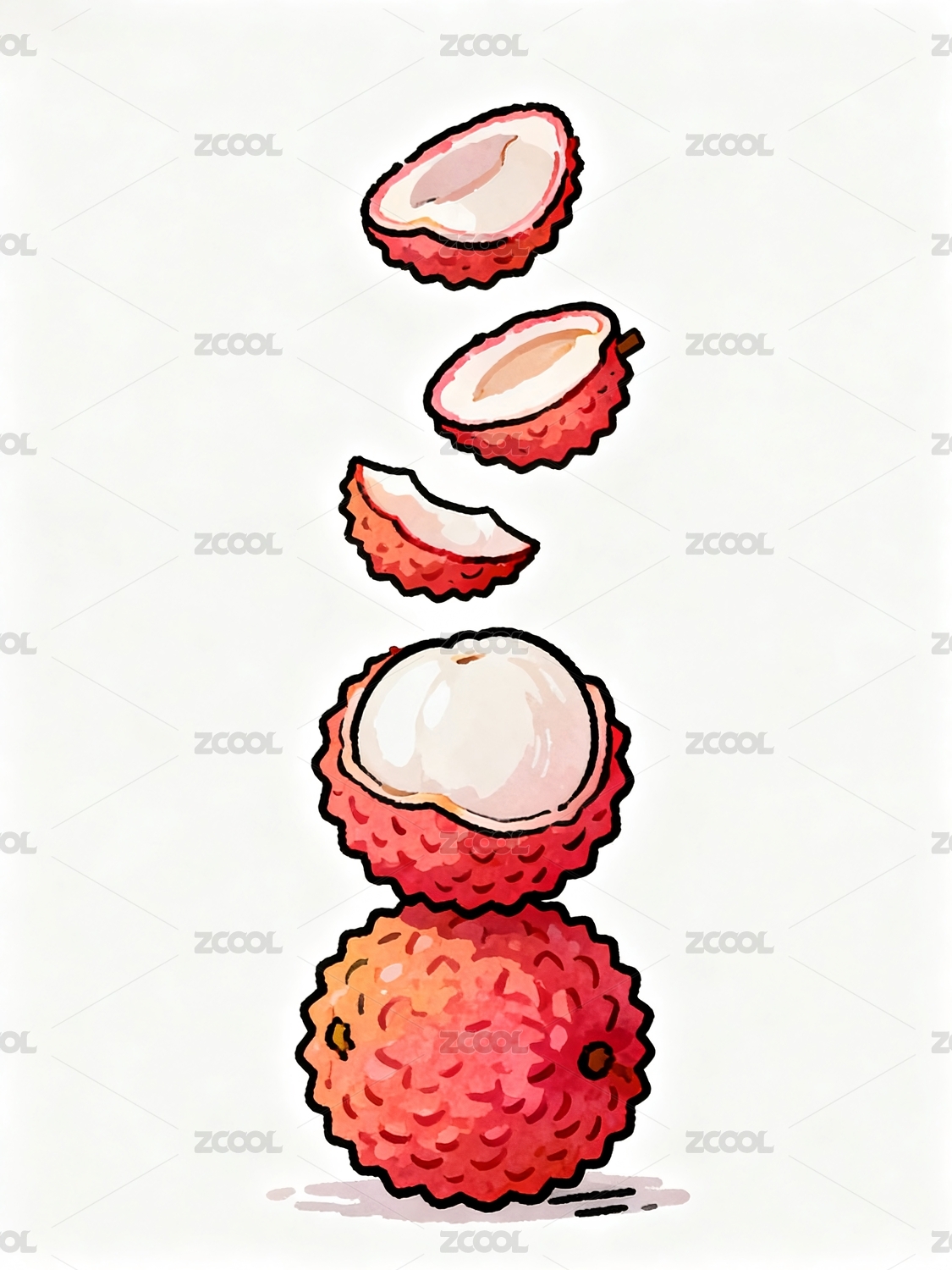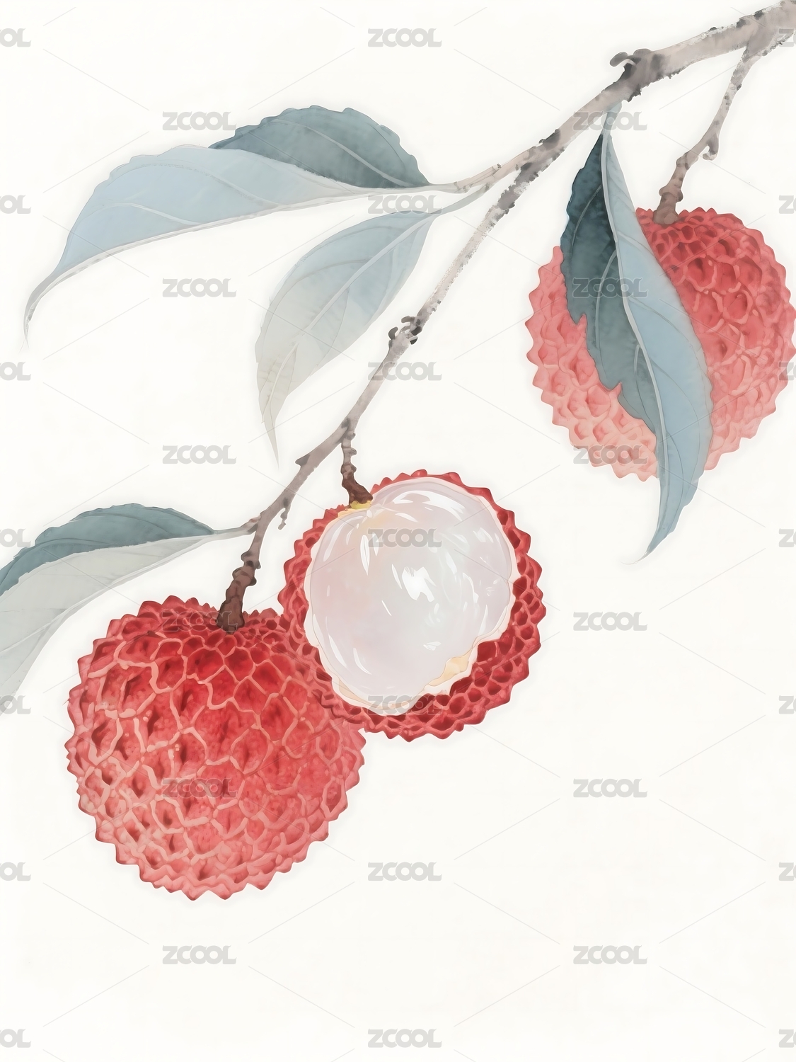 荔枝,水果,水果插画,插画,荔枝水彩插画