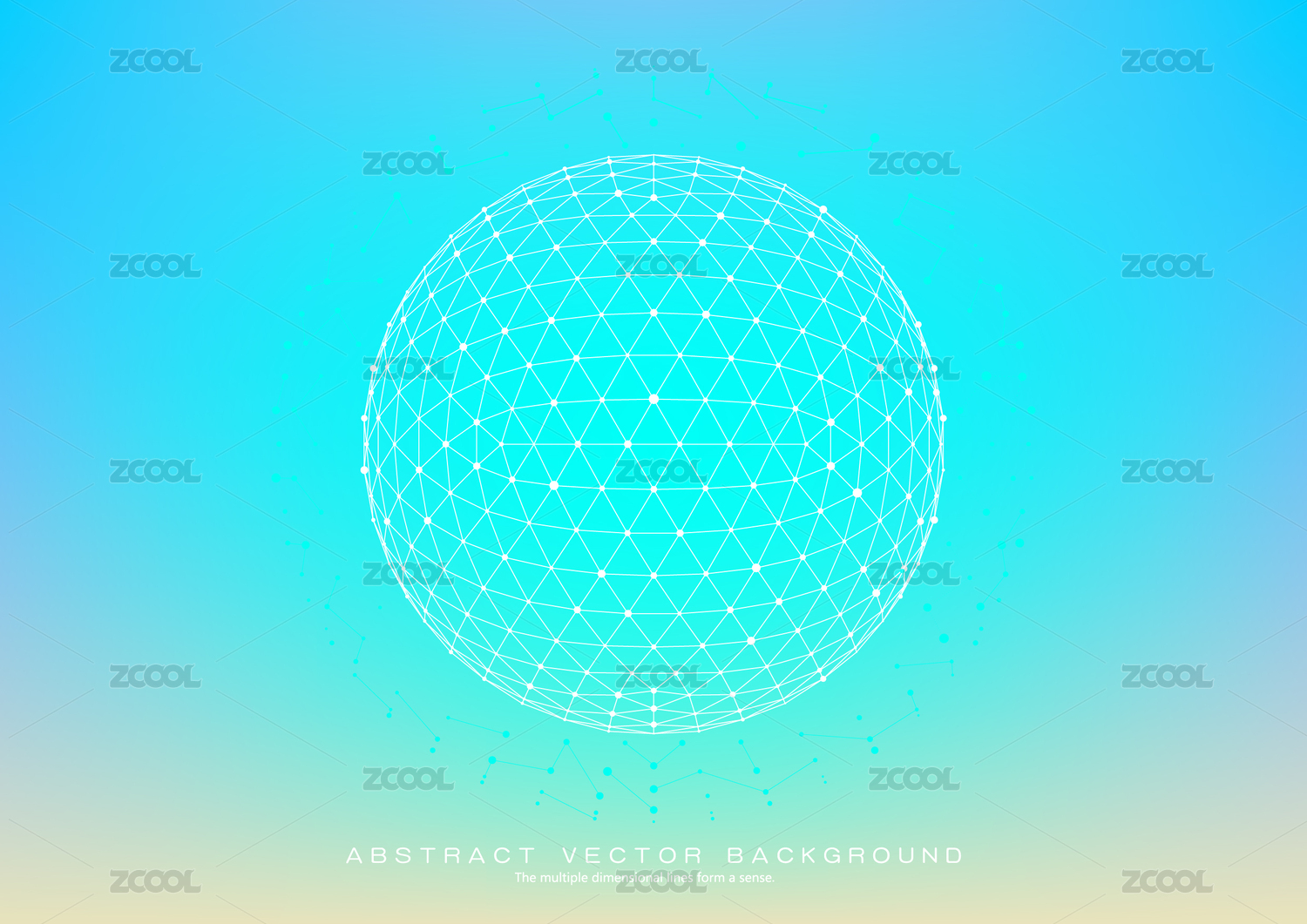 点线链接三维球体,点线连接抽象的科技矢量背景