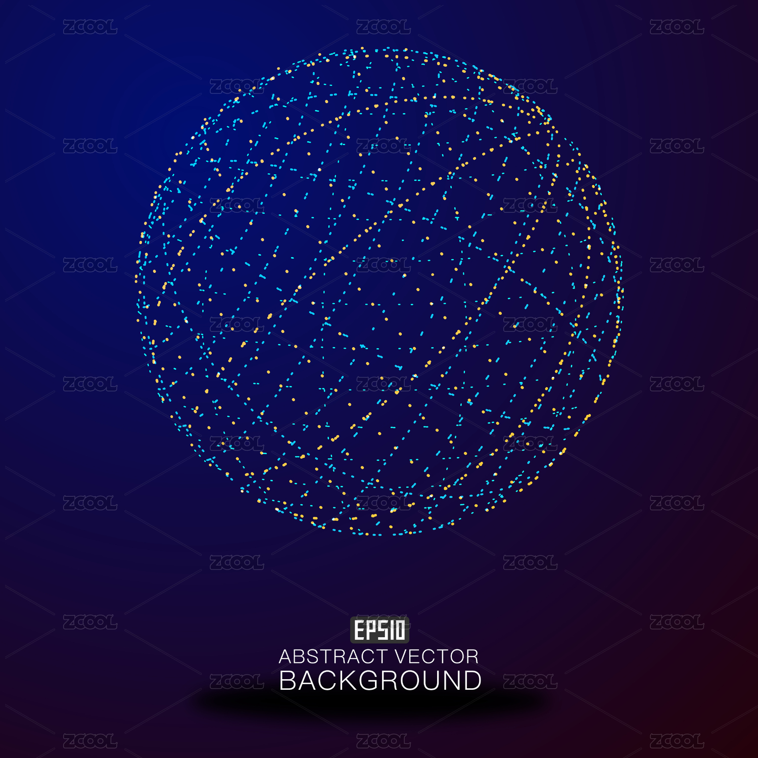 点构造球形虚线框、科学技术创意概念抽象矢量图