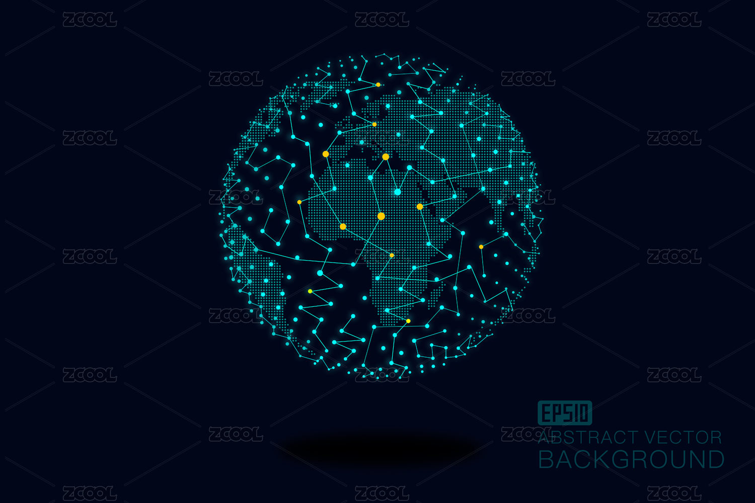 点和线构成的抽象地球,区块链和大数据概念,全球化和国际化的寓意