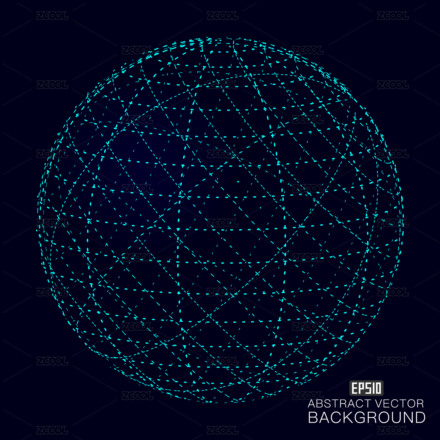 辐射线、点线连接组成三维球体,抽象矢量星球,寓意全球化、国际化,科学技术概念