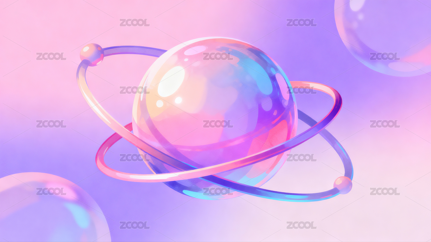 插画,炫彩,三维,3D,全息色彩,酸性设计,镭射,金属质感,蓝色,紫色