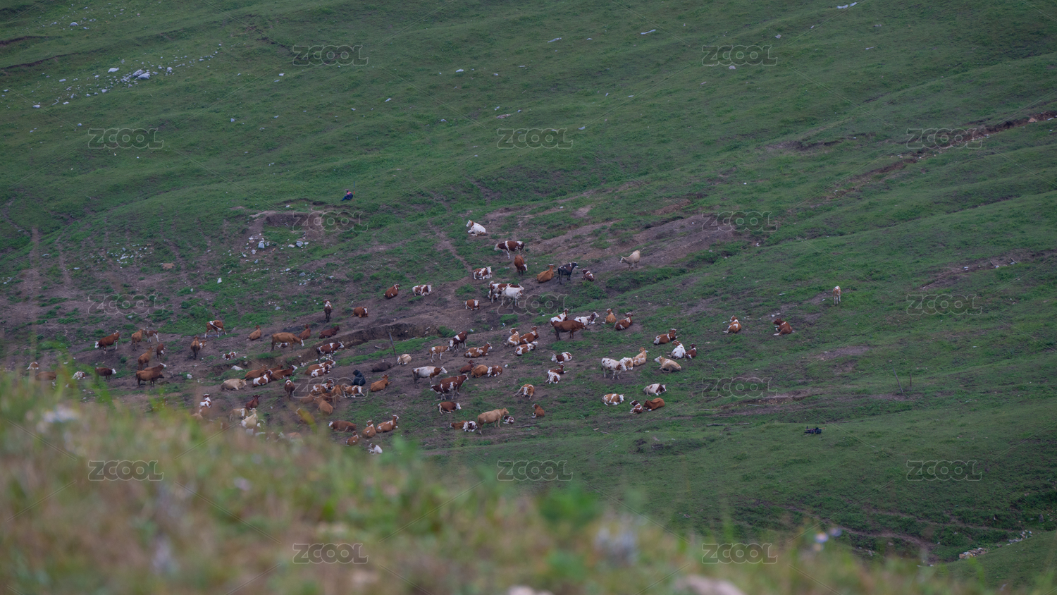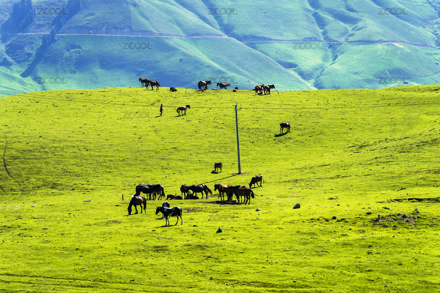 中国新疆夏季蓝天白云下G217独库公路沿途高山草原