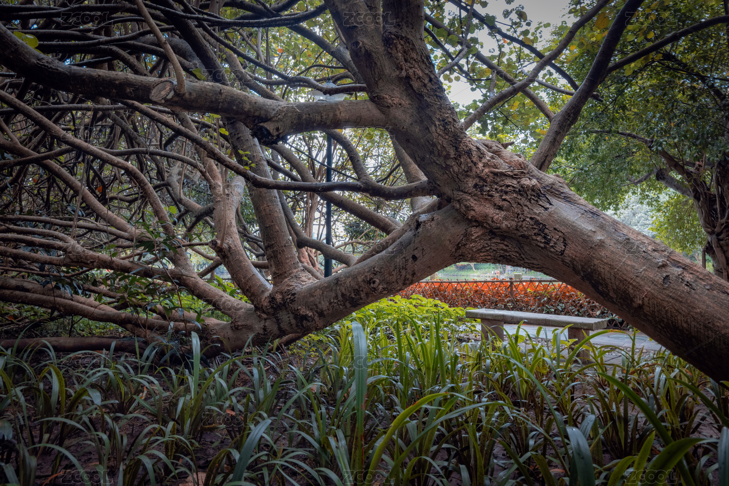 中国广州,两只夜鹭憩息在流花湖公园的树枝上