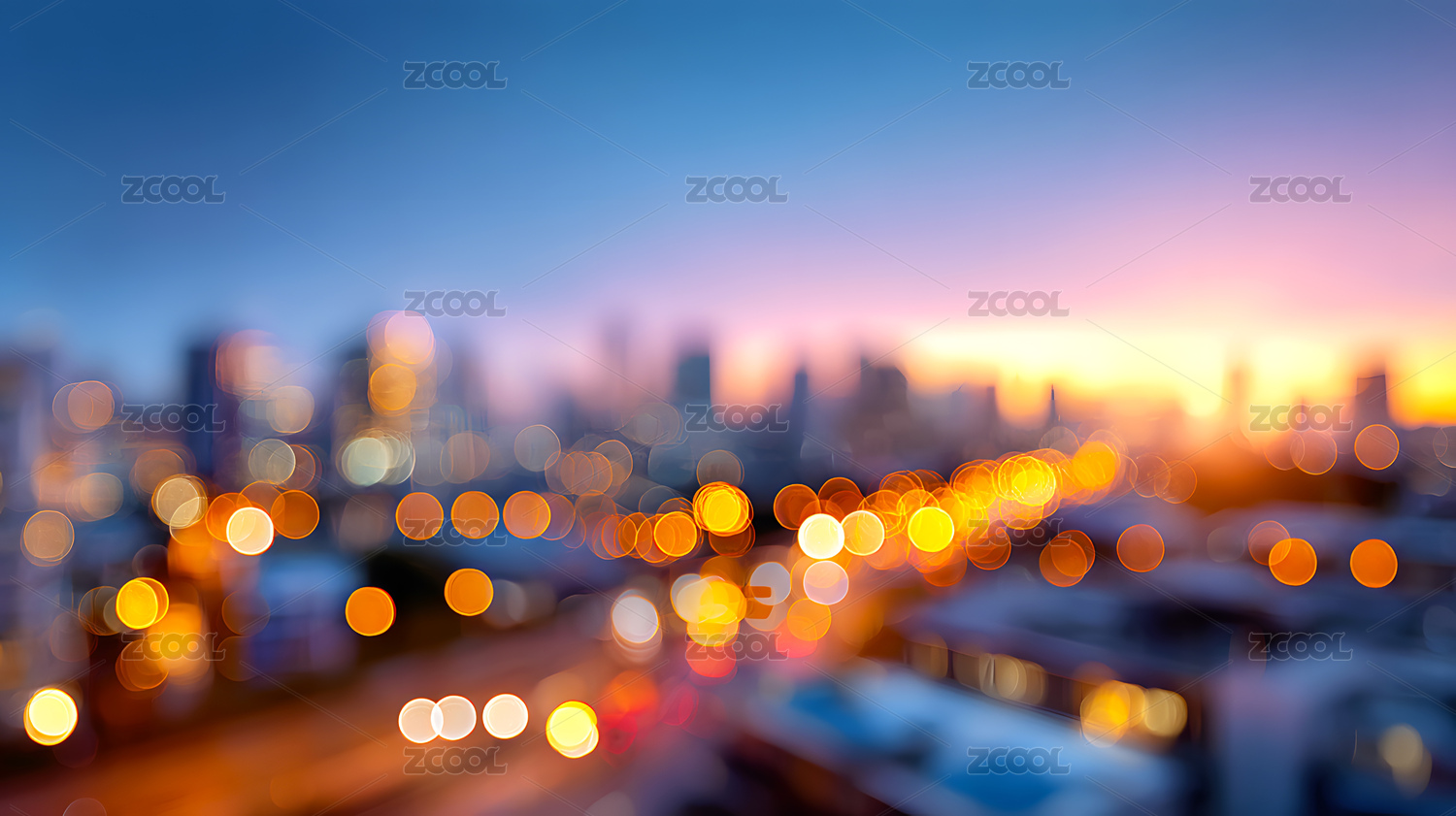 城市夜景灯光彩色梦幻光斑都市风光多色