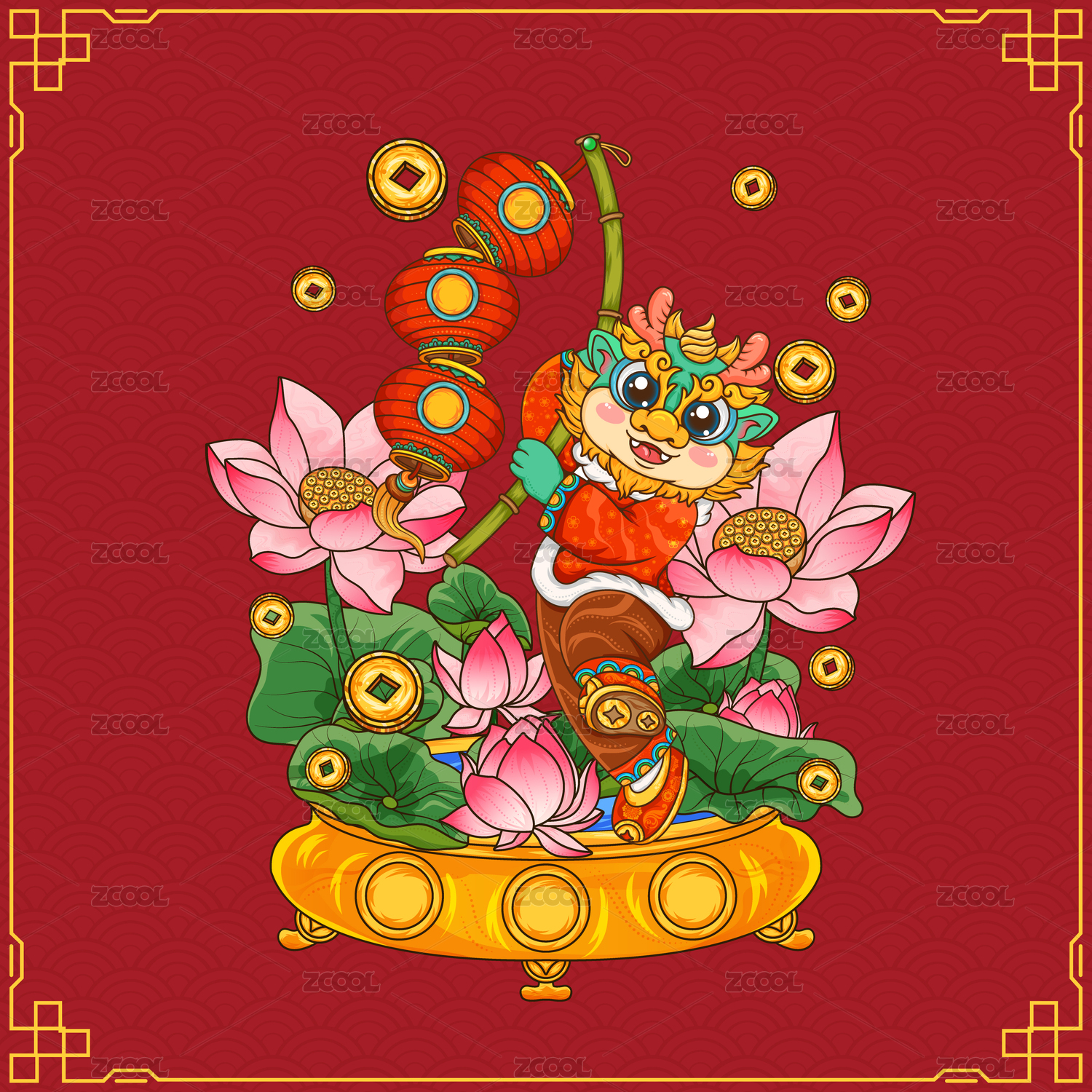 龙年吉祥生肖矢量国风拜年祝福红包插画设计