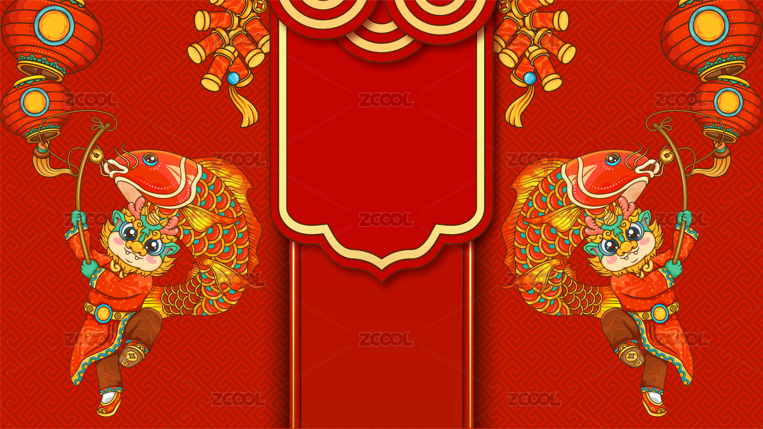 矢量龙年十二生肖新年春节锦鲤拜年封面背景