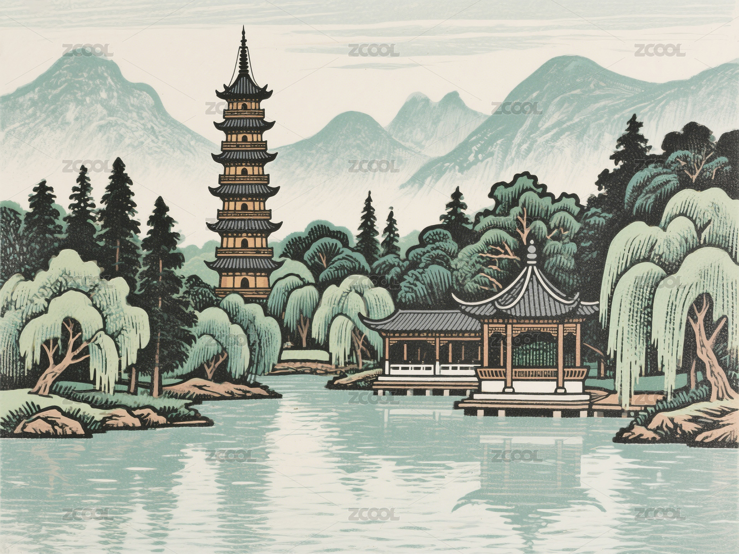 湖水,八角亭,河,江,船,建筑,老式建筑,瓦房,瓦片,山
