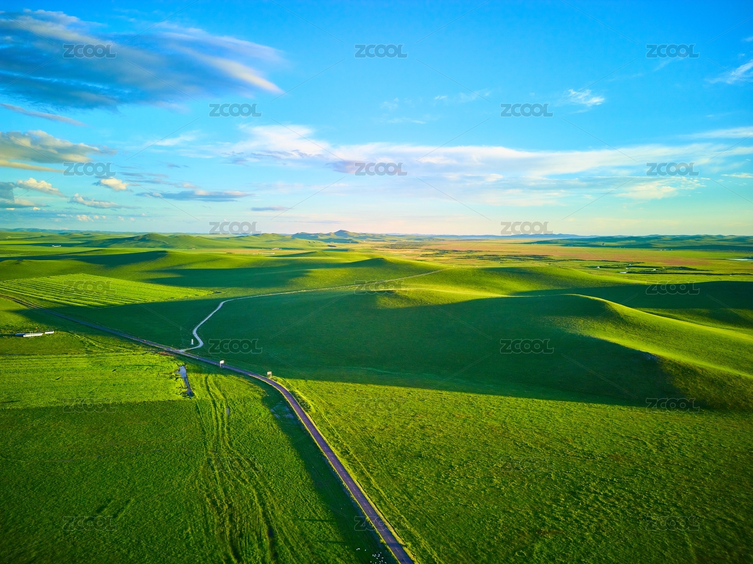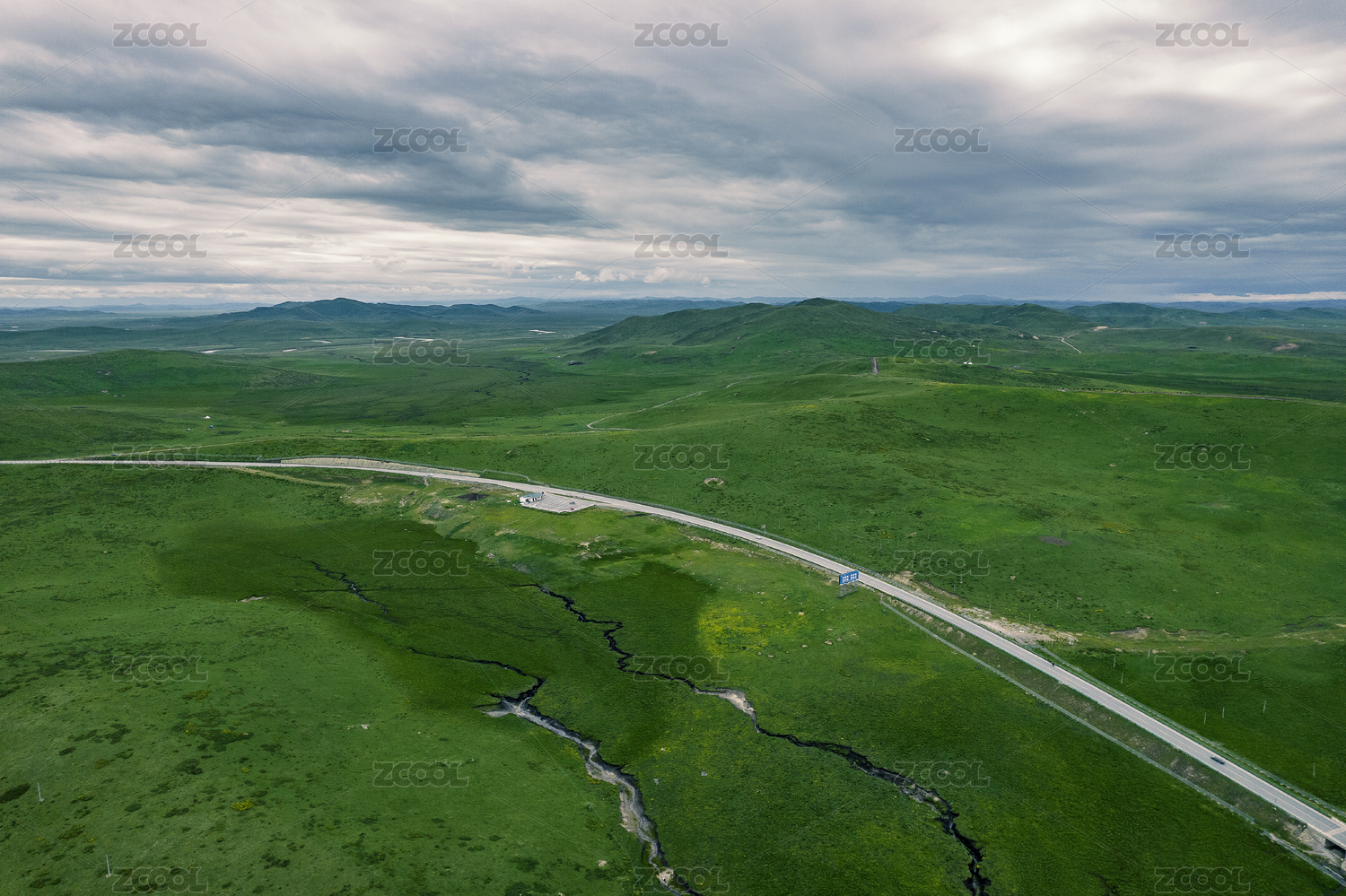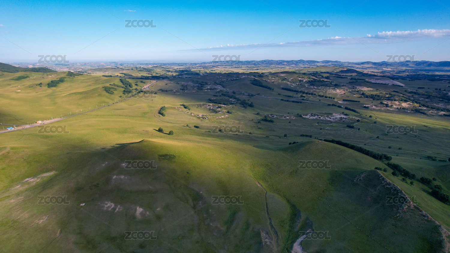 绿色草原公路航拍