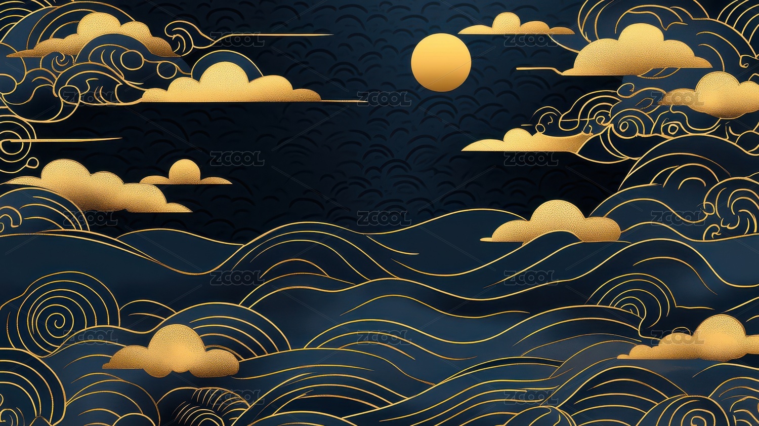 AI数字艺术,背景,传统,中国文化,国风,中秋节,云,红色,节日,中国画