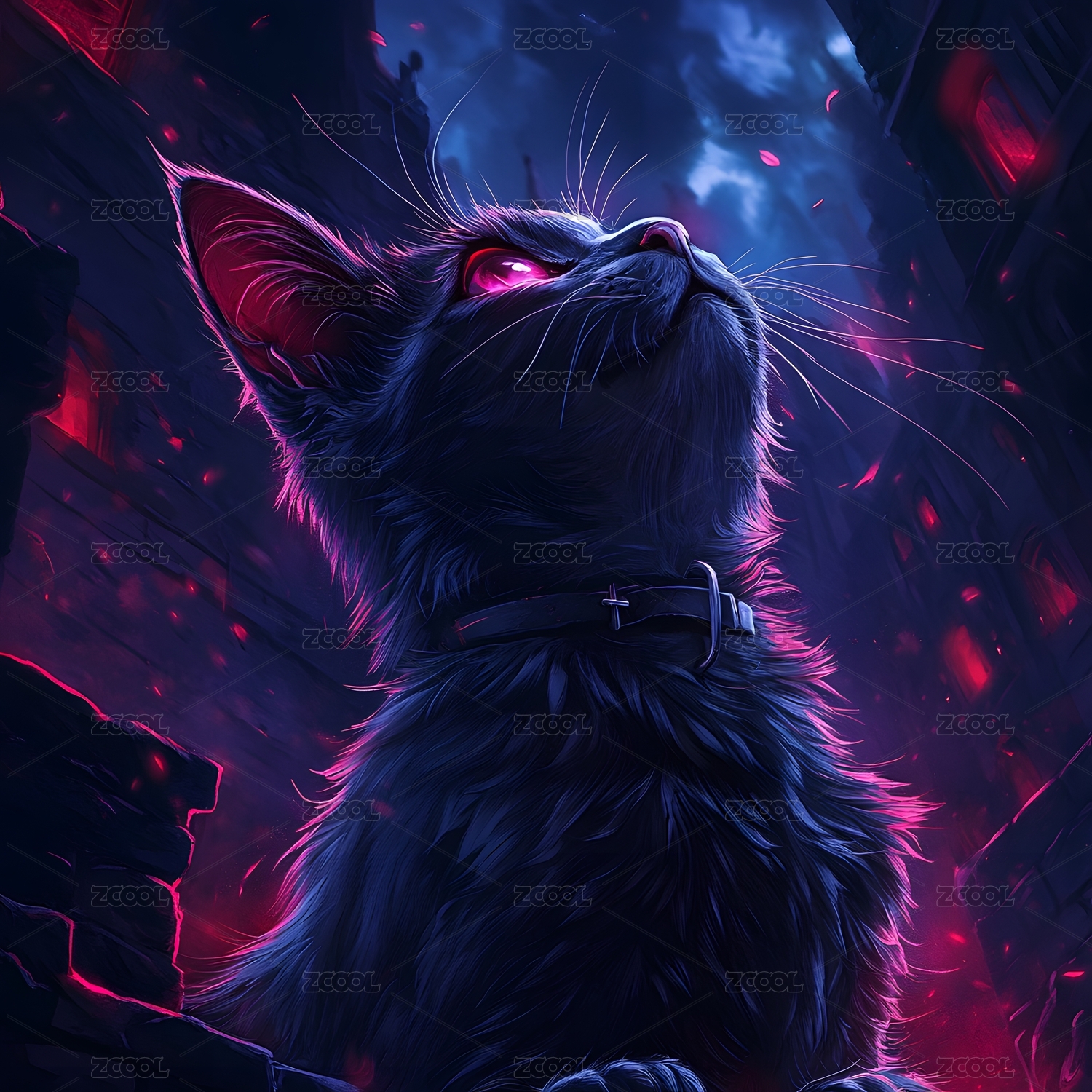 黑暗魔法黑色猫咪再夜空下仰望的插画壁纸