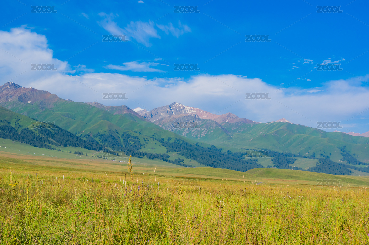 中国新疆伊犁喀拉峻草原蓝天白云自然风光