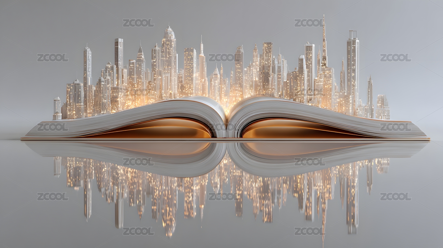 书本之上城市璀璨光影虚幻意境