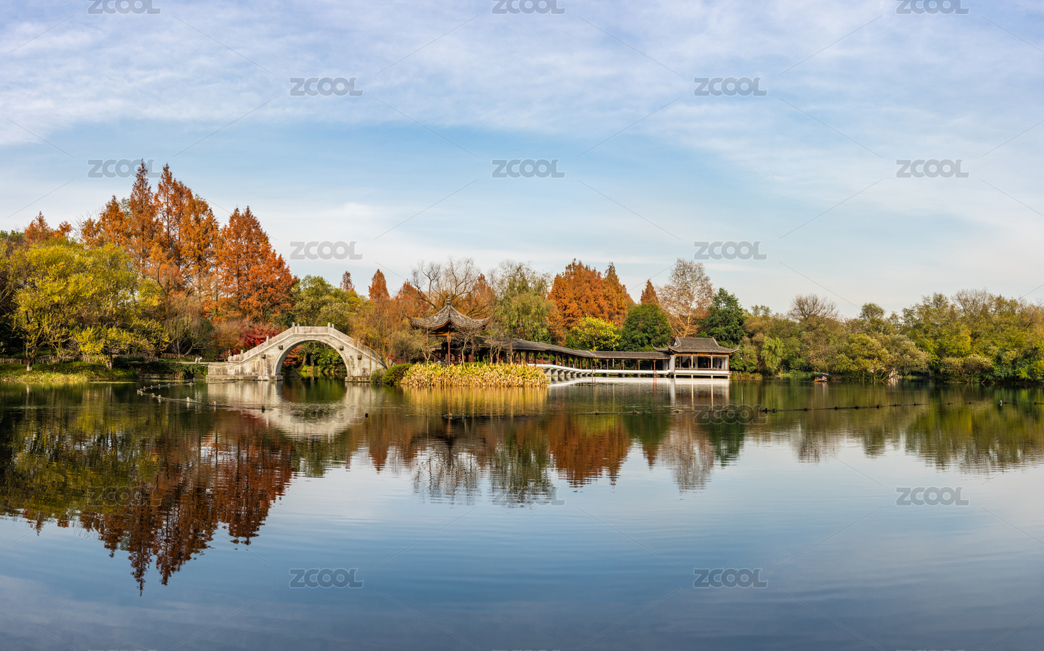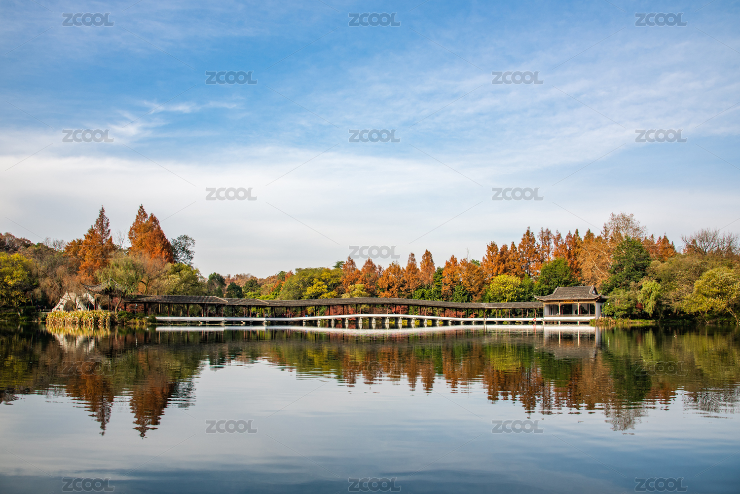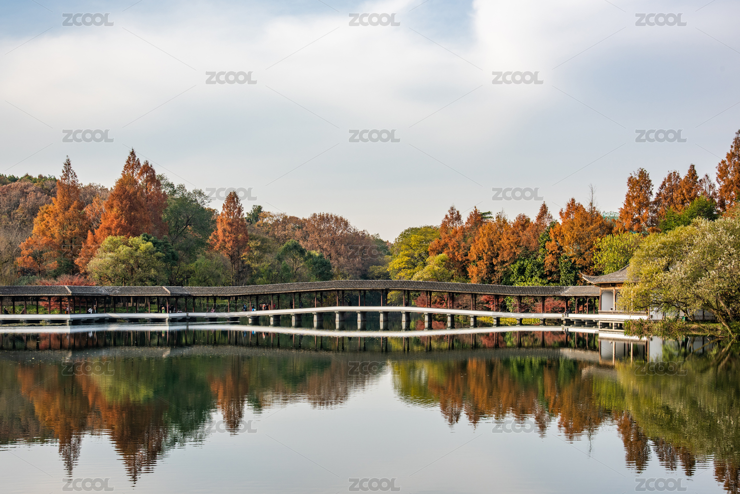 中国杭州西湖浴鹄湾霁虹桥秋色