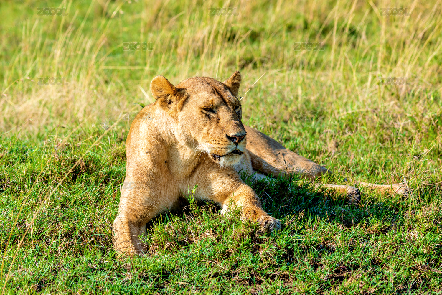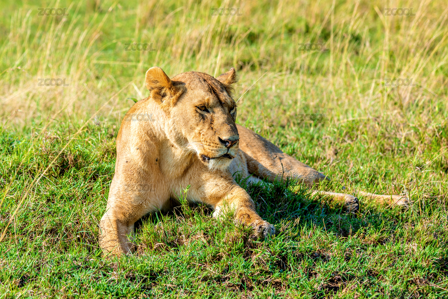 非洲肯尼亚马赛马拉大草原上正在寻猎的母狮