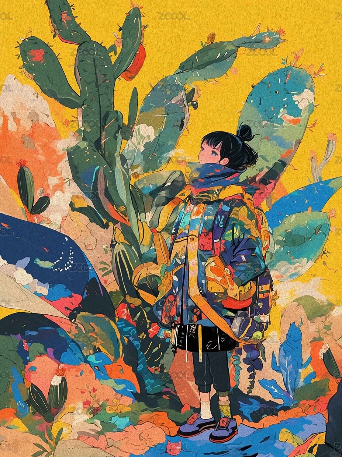 仙人掌女孩插画