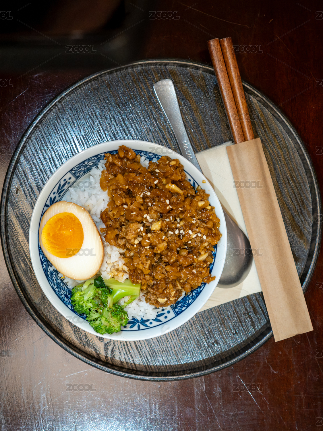 一碗配有卤蛋的经典中国台湾美食卤肉飯