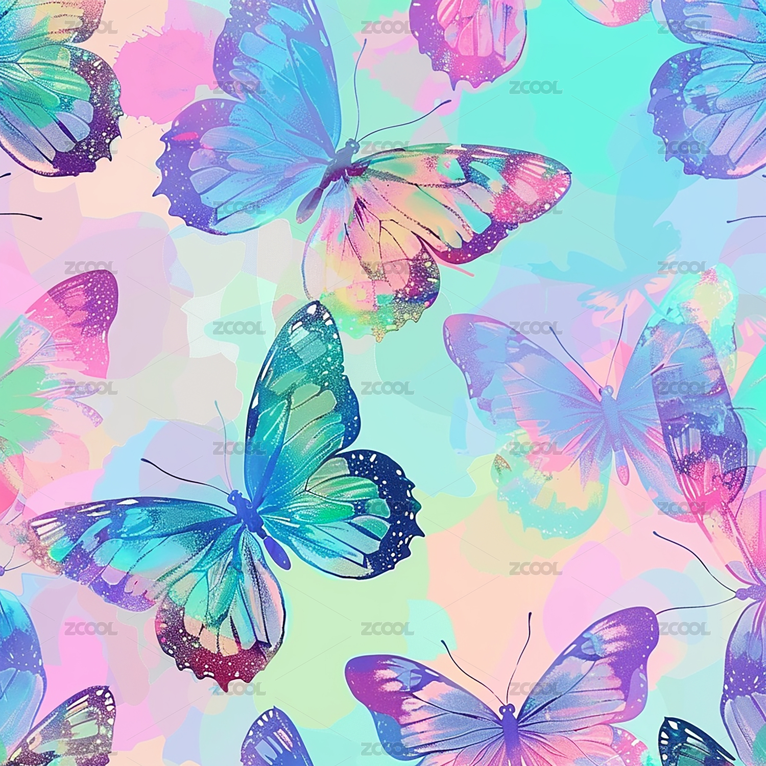 梦幻飞舞煽动翅膀的彩色蝴蝶印花图案