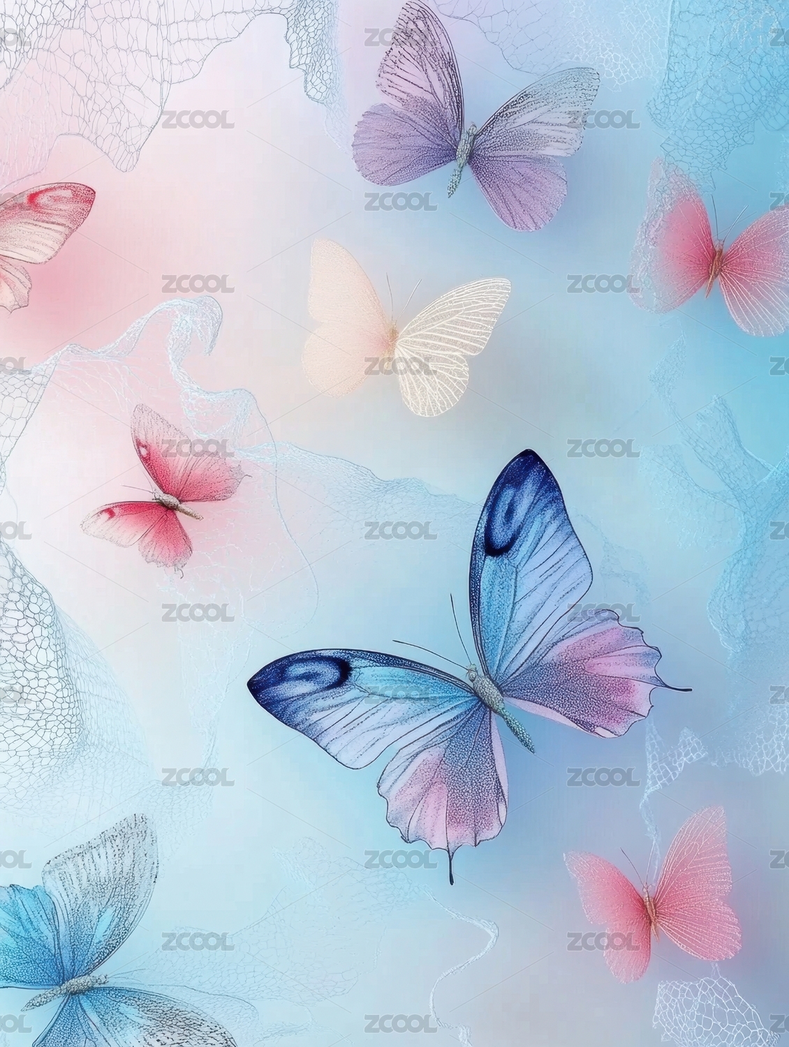 唯美梦幻展翅飞翔的蝴蝶图案印花插画