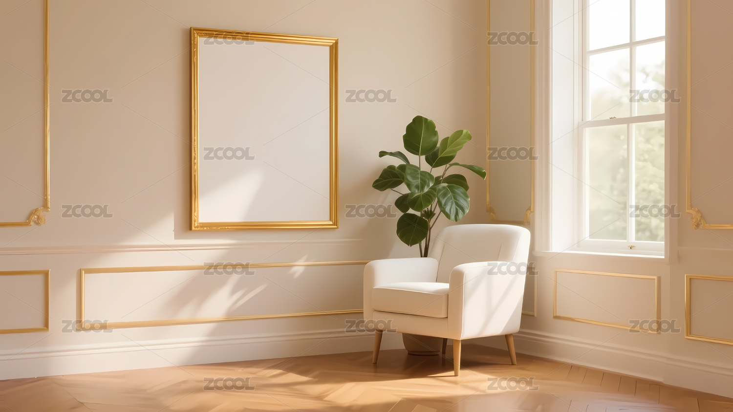 古典,奢华,阳光,洒落,优雅,空间,椅子,植物,盆栽,墙壁