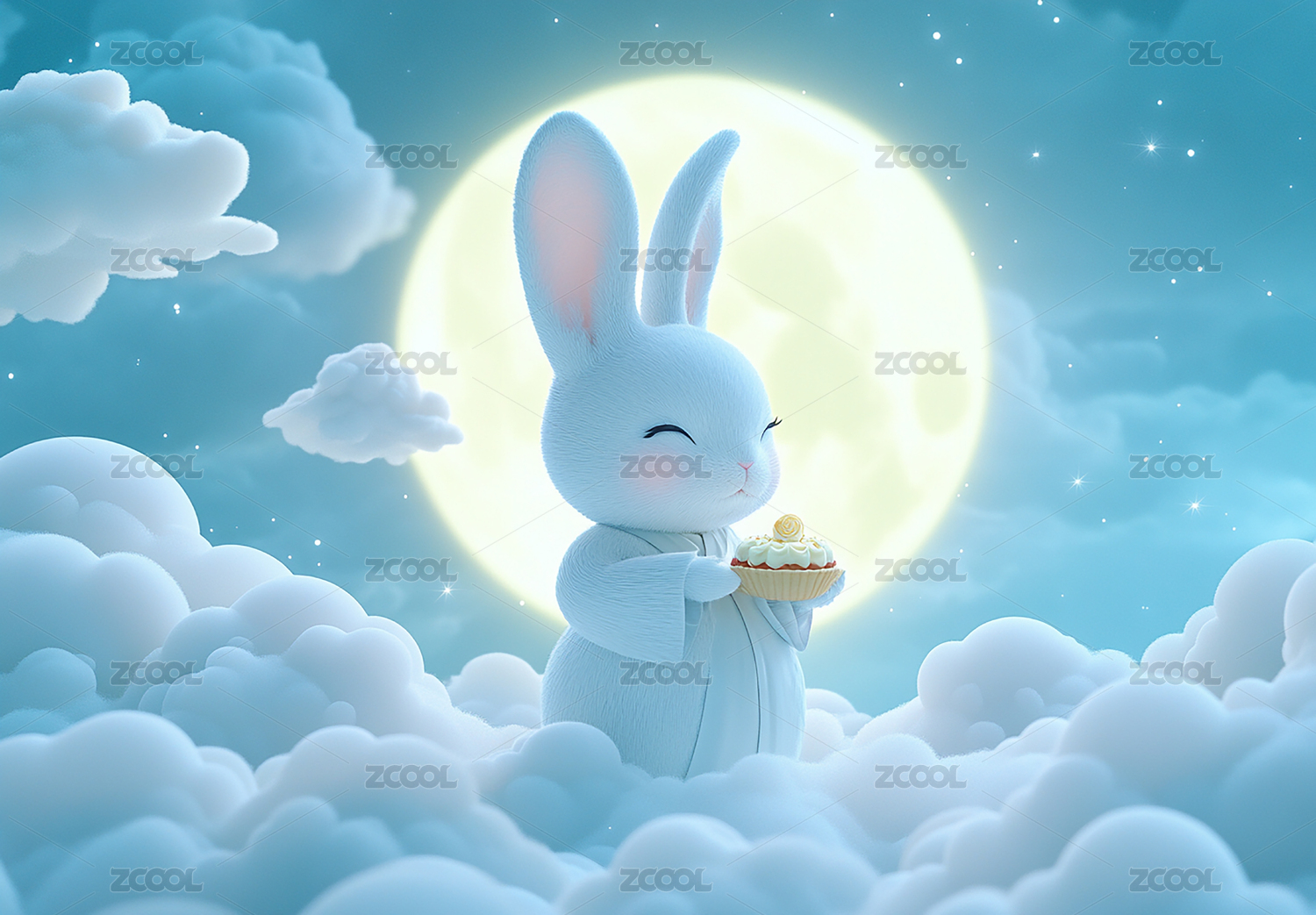兔子玉兔月亮灯笼可爱月饼3D立体风格