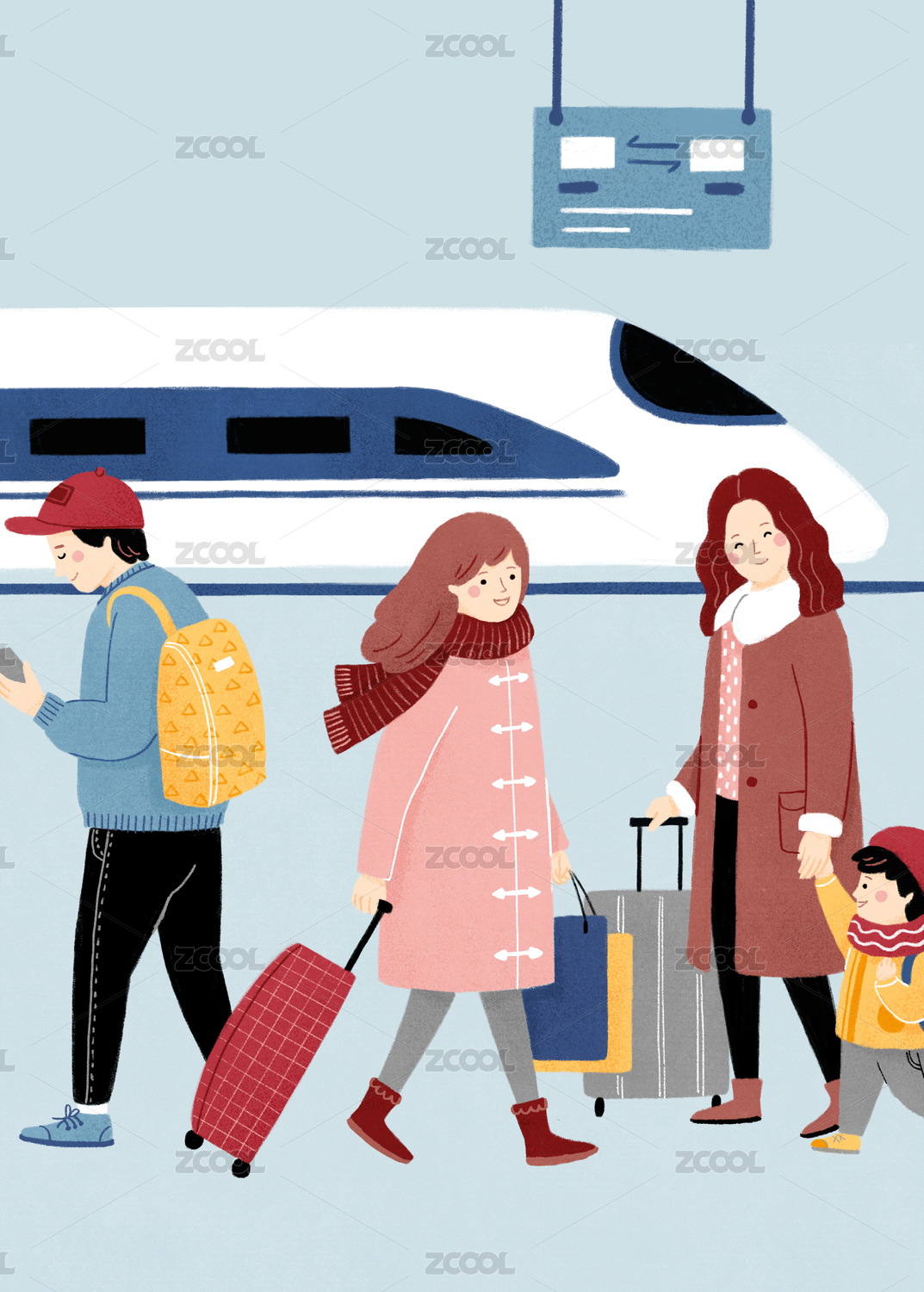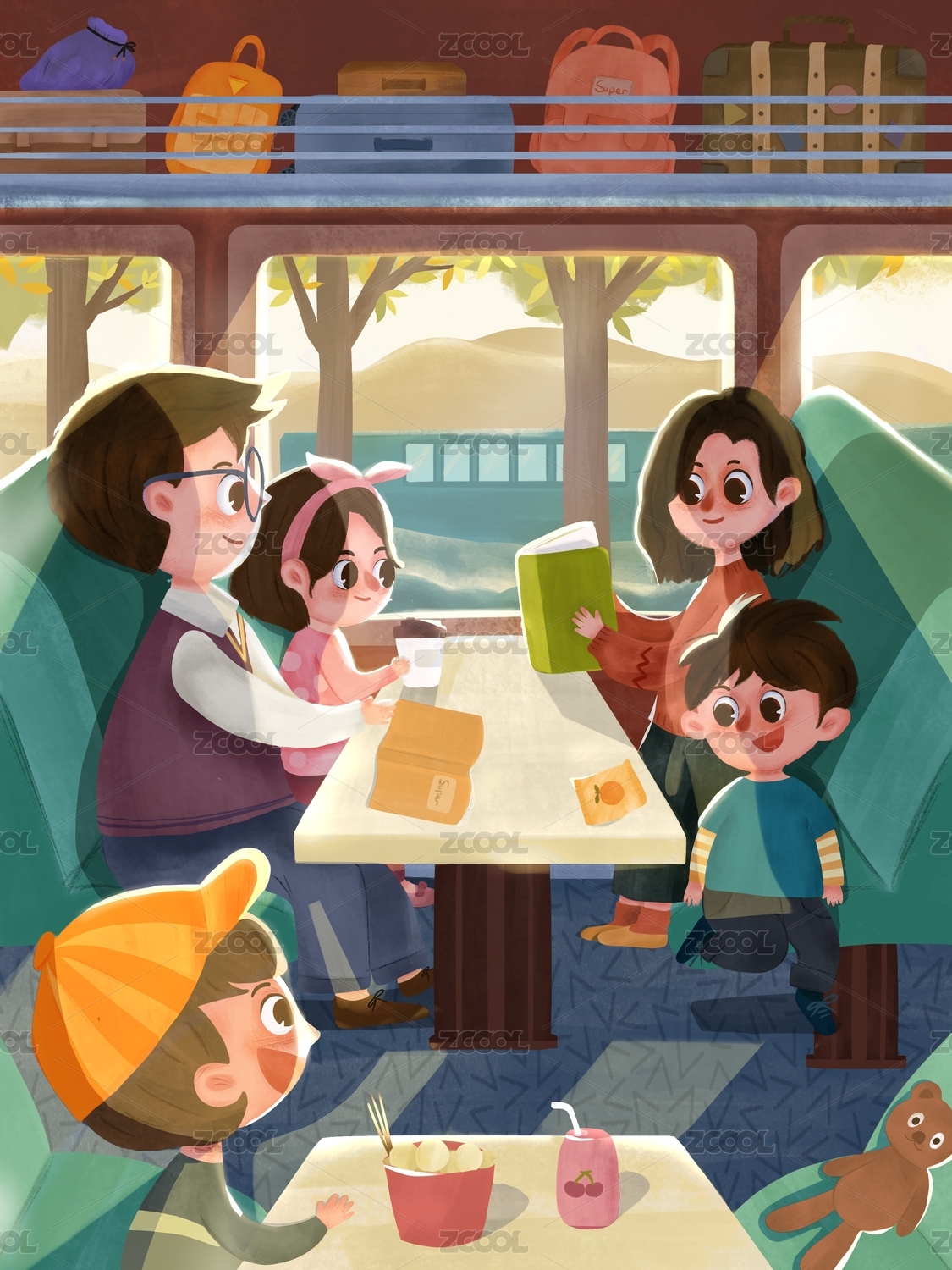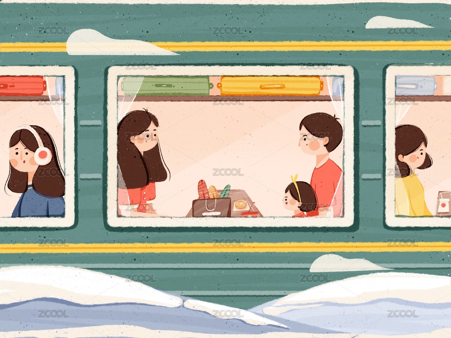 水彩,儿插,火车,坐火车,旅游,乘火车,出门,车窗,列车,人物