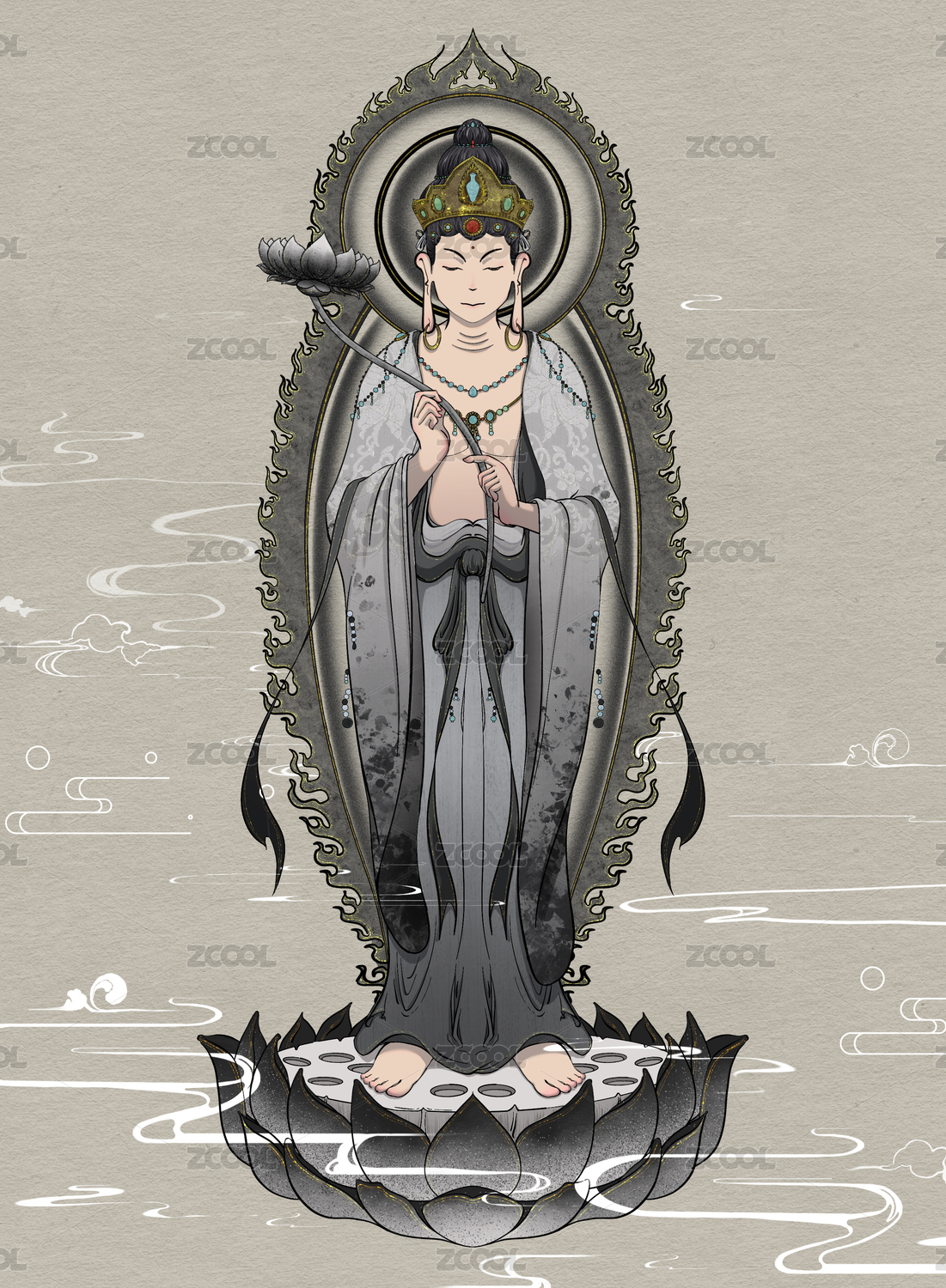 国潮仙女手绘国风敦煌侍女莲花底座海报插画