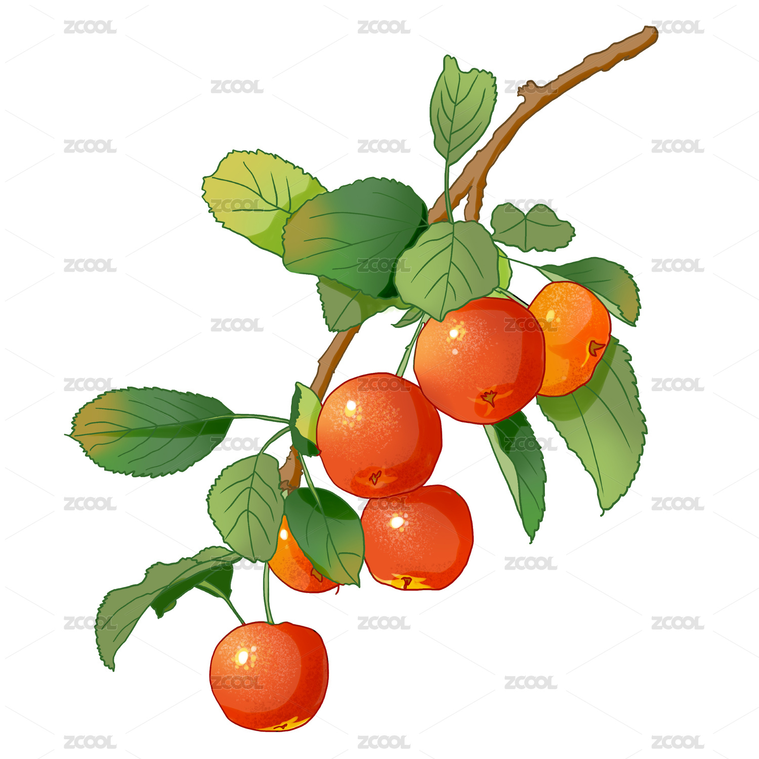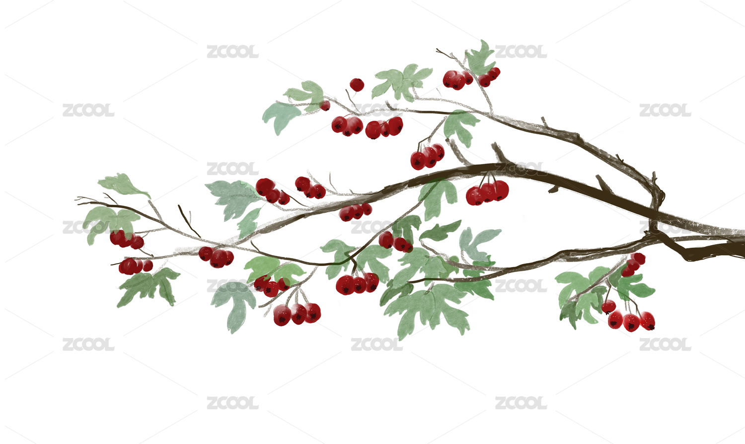 水墨山楂素材整枝元素