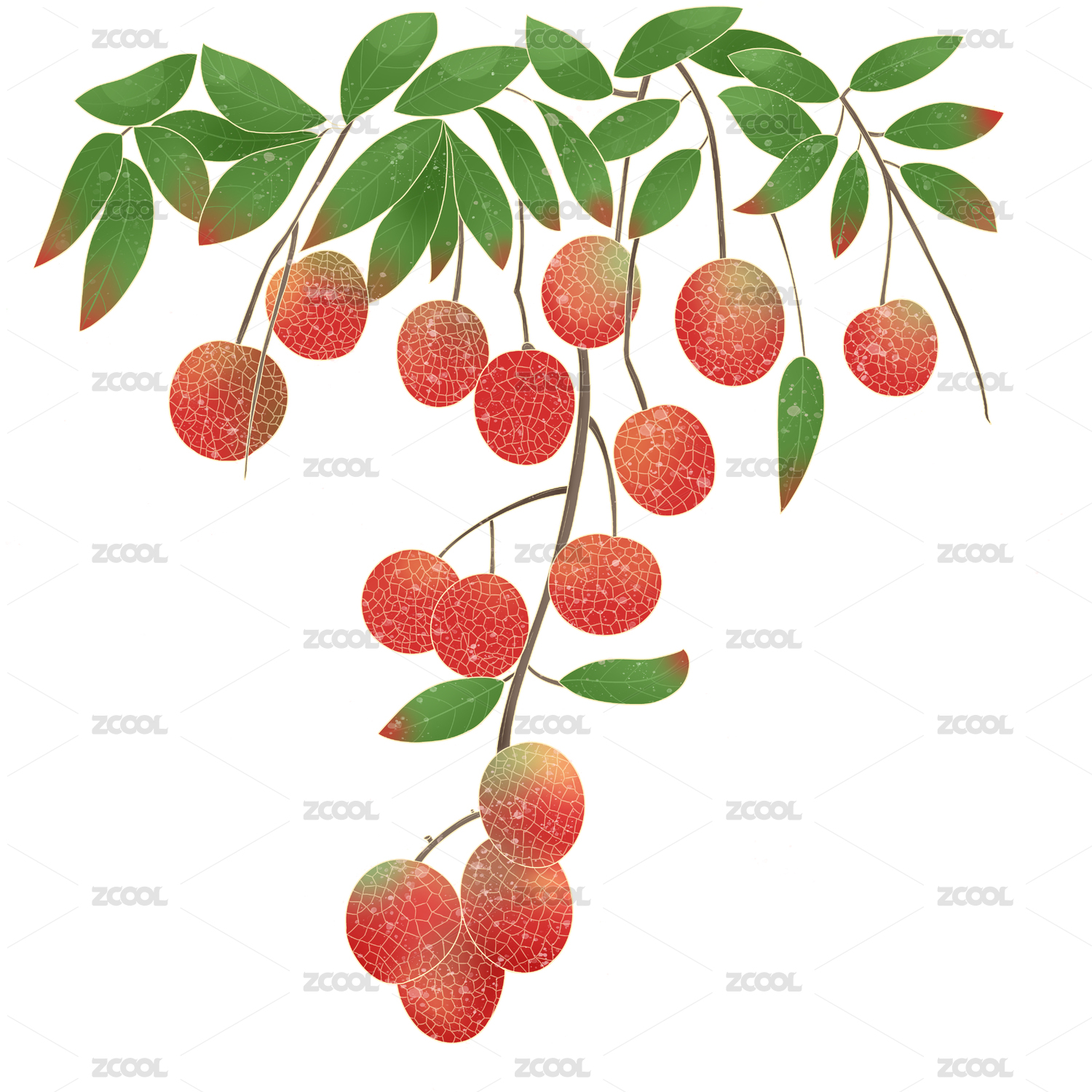 国风手绘树上的荔枝