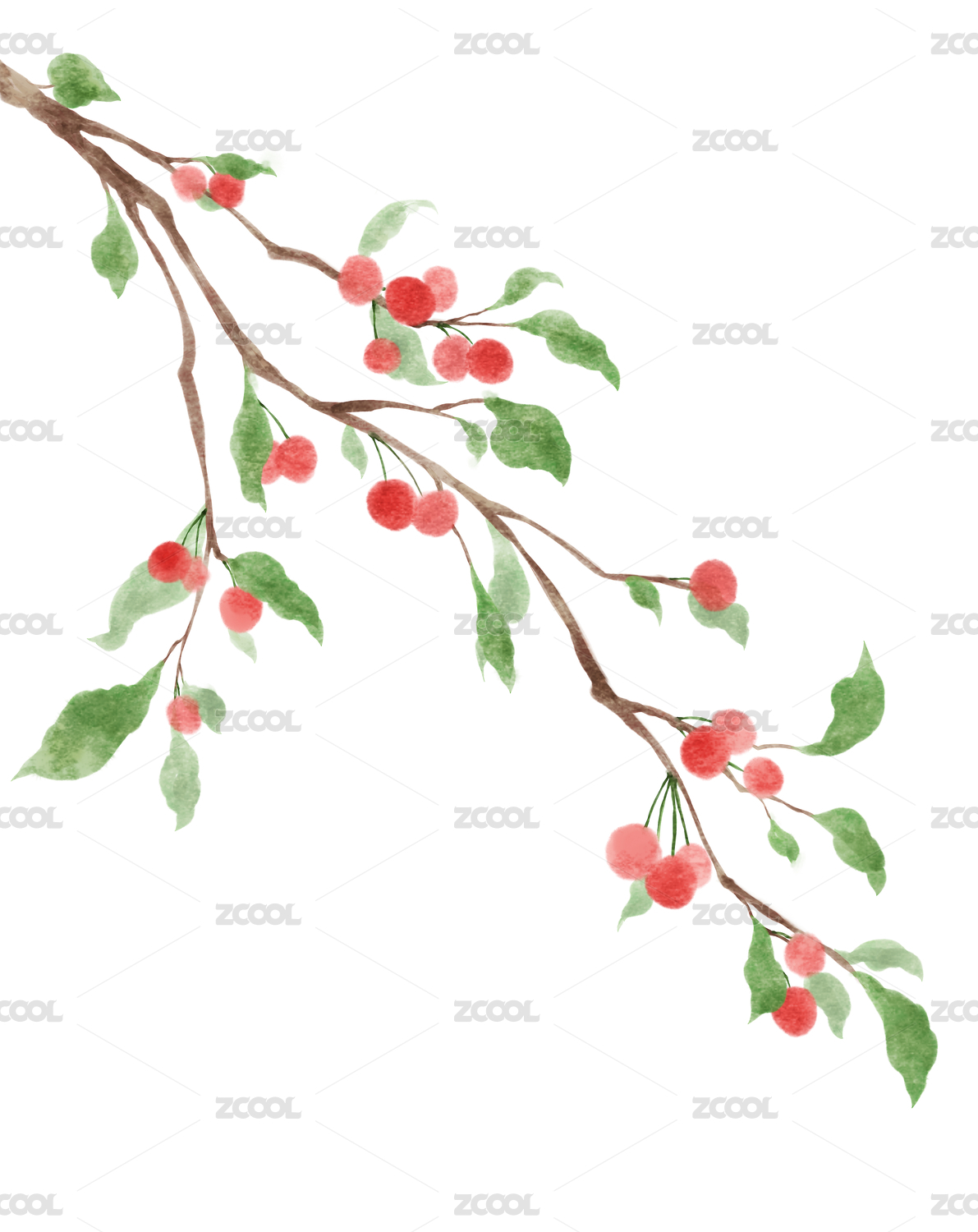 自然,插画,植物,中国画,樱桃,树枝,国风,国画,水彩,水墨