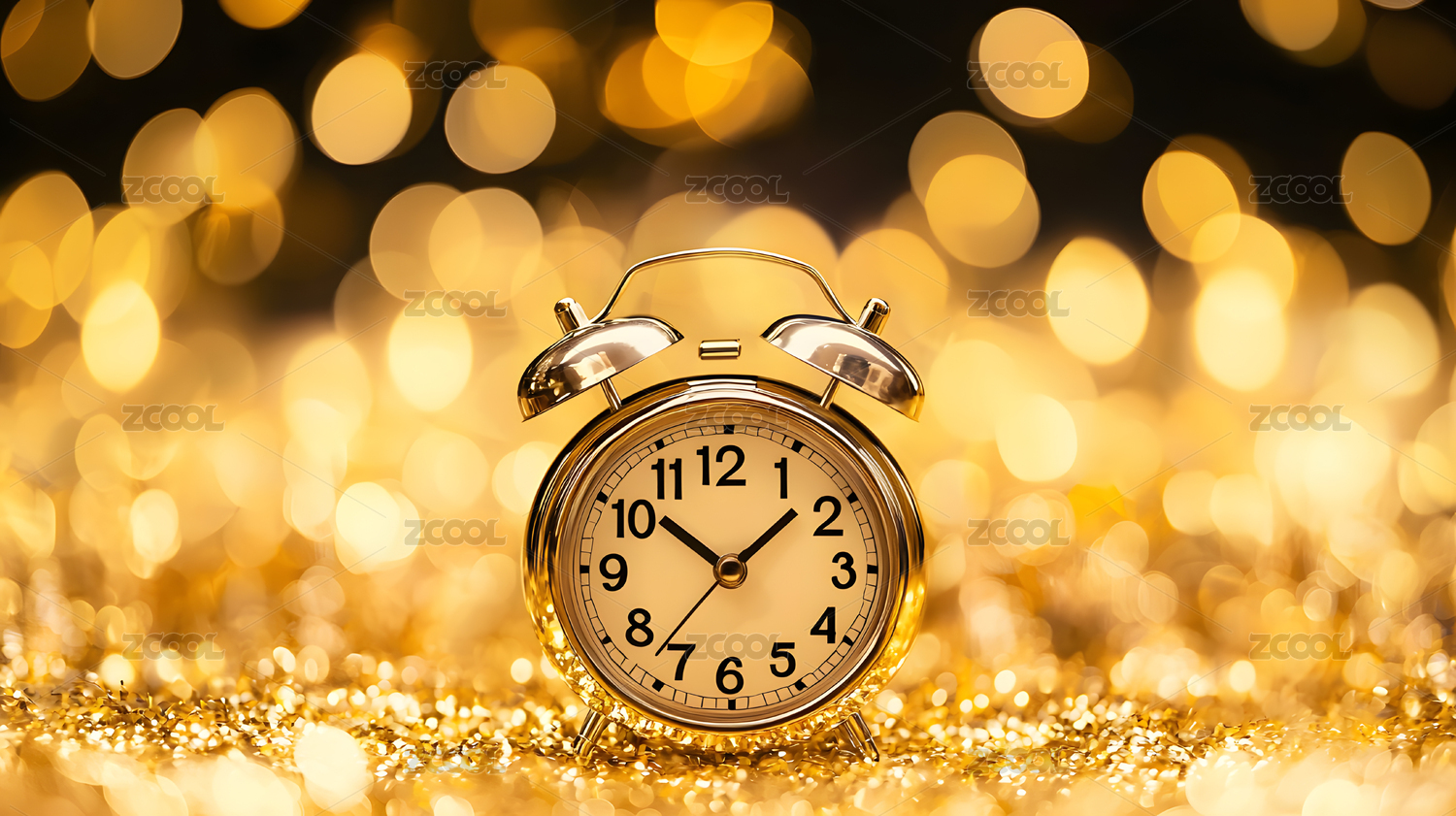 闪闪发光背景上金色闹钟