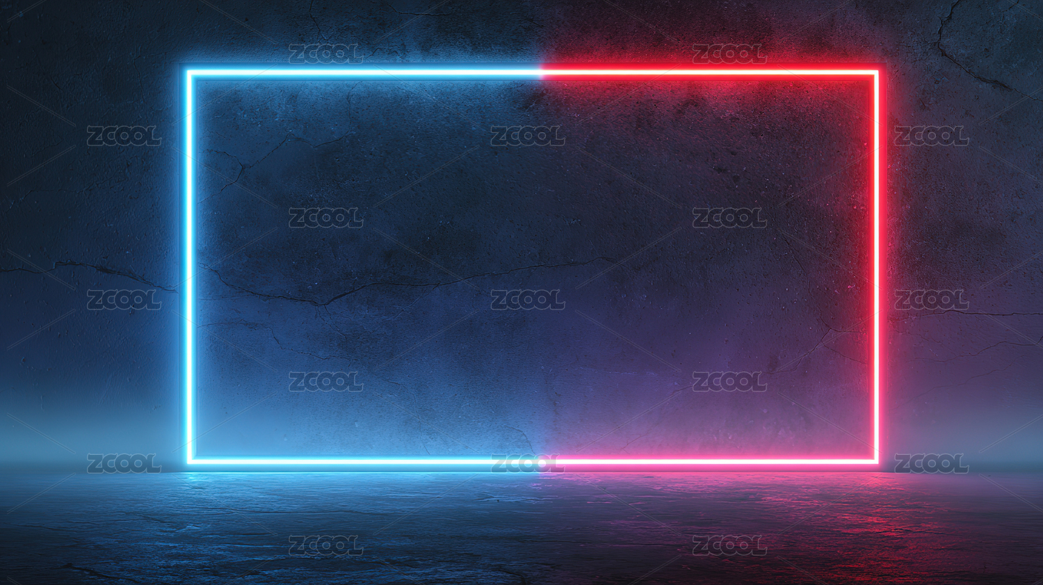 霓虹灯框在混凝土墙上的光影效果