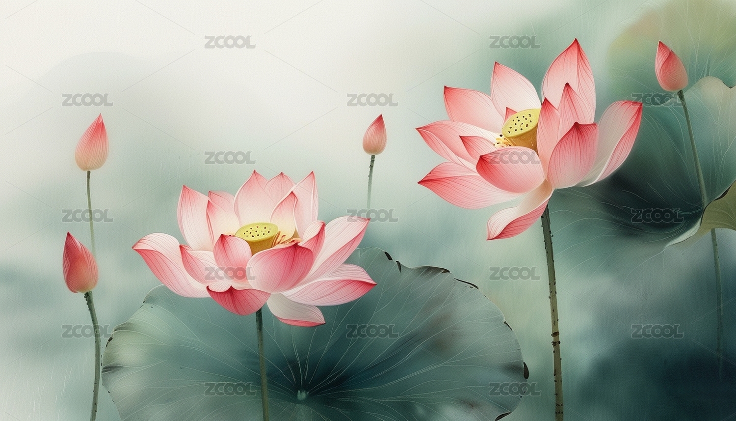 荷花,国画,水墨画,水彩画,中国风,高洁,写意,花,装饰,花纹