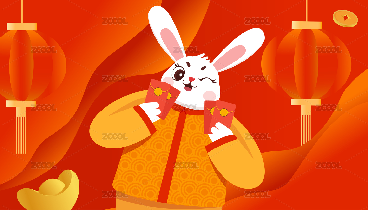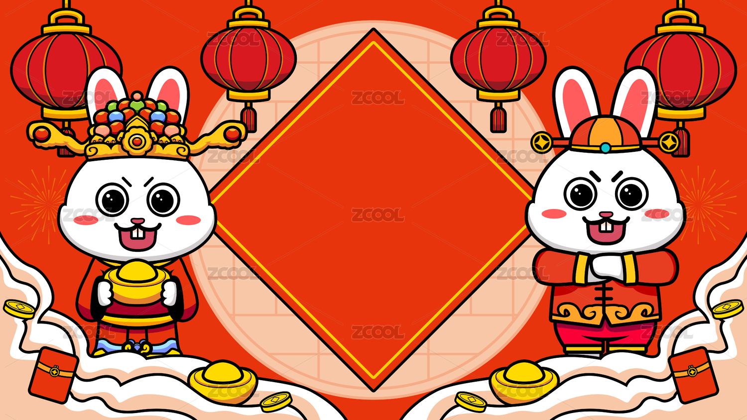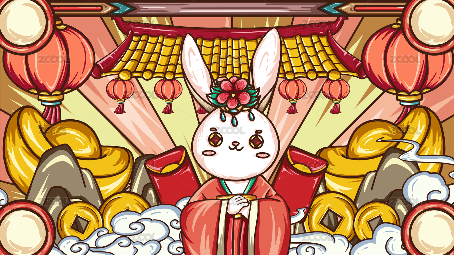 兔年财神喜庆插画背景