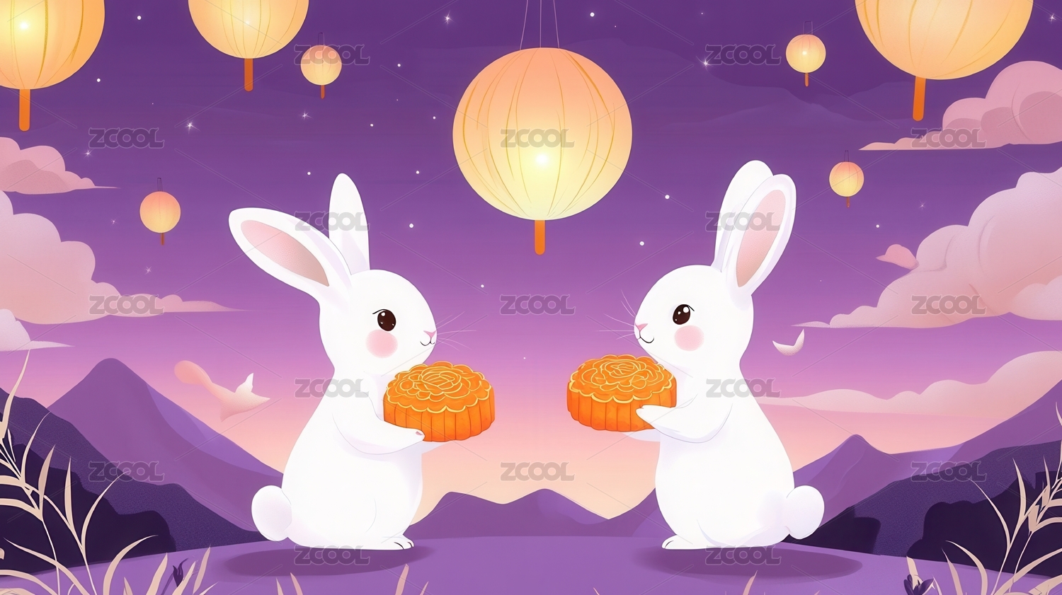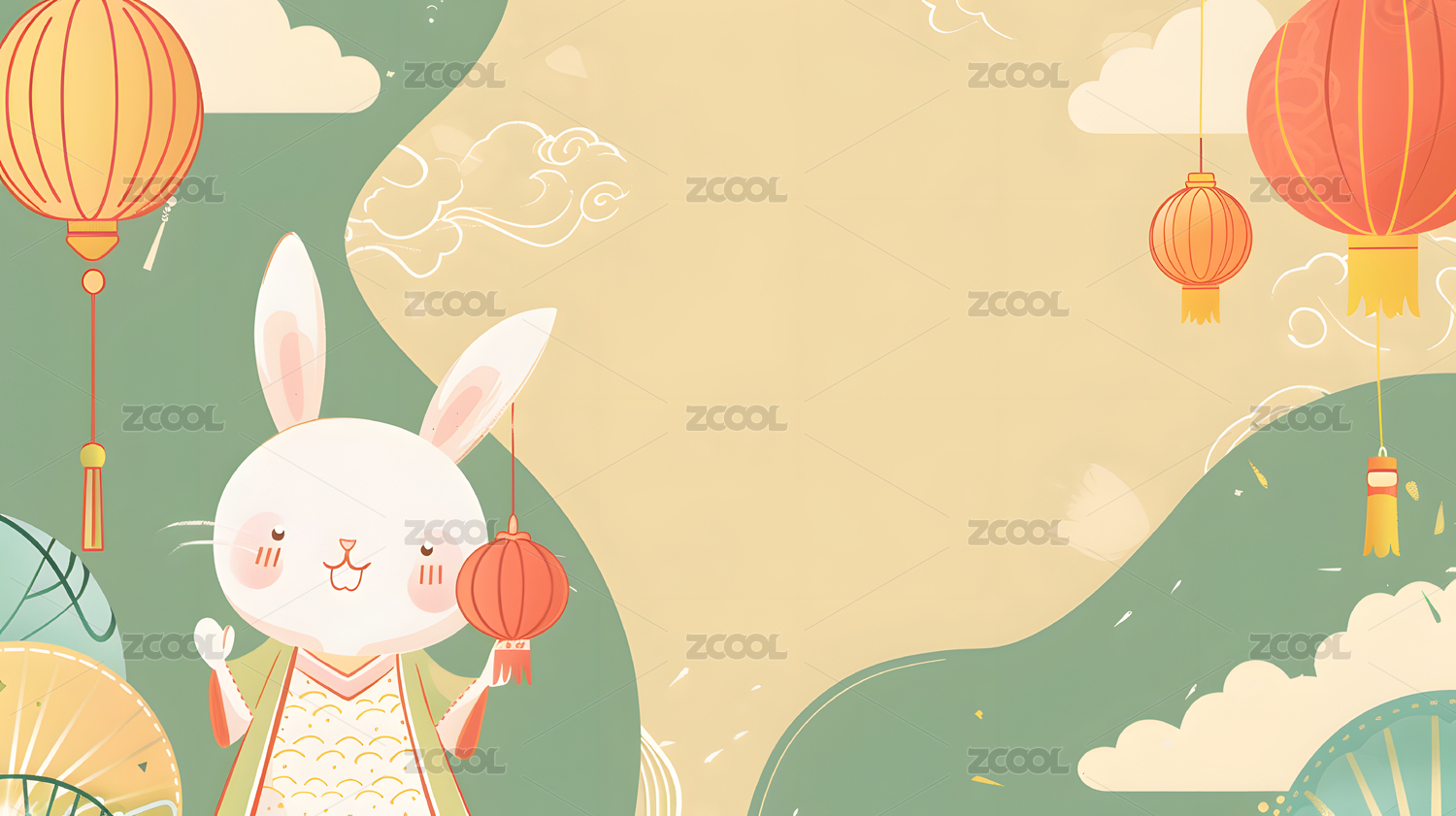 中秋佳节玉兔与花灯喜庆场景