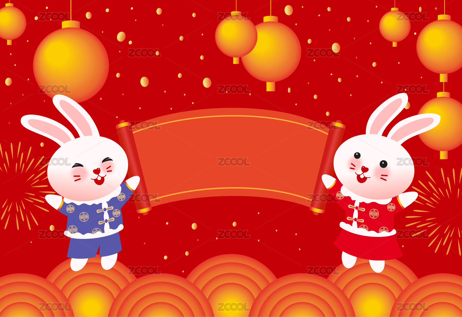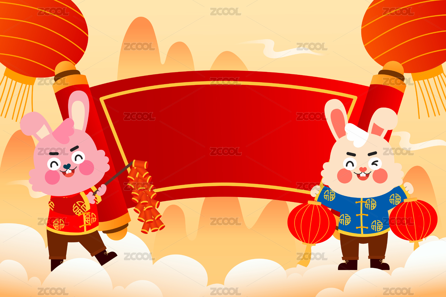 兔年新年背景插画