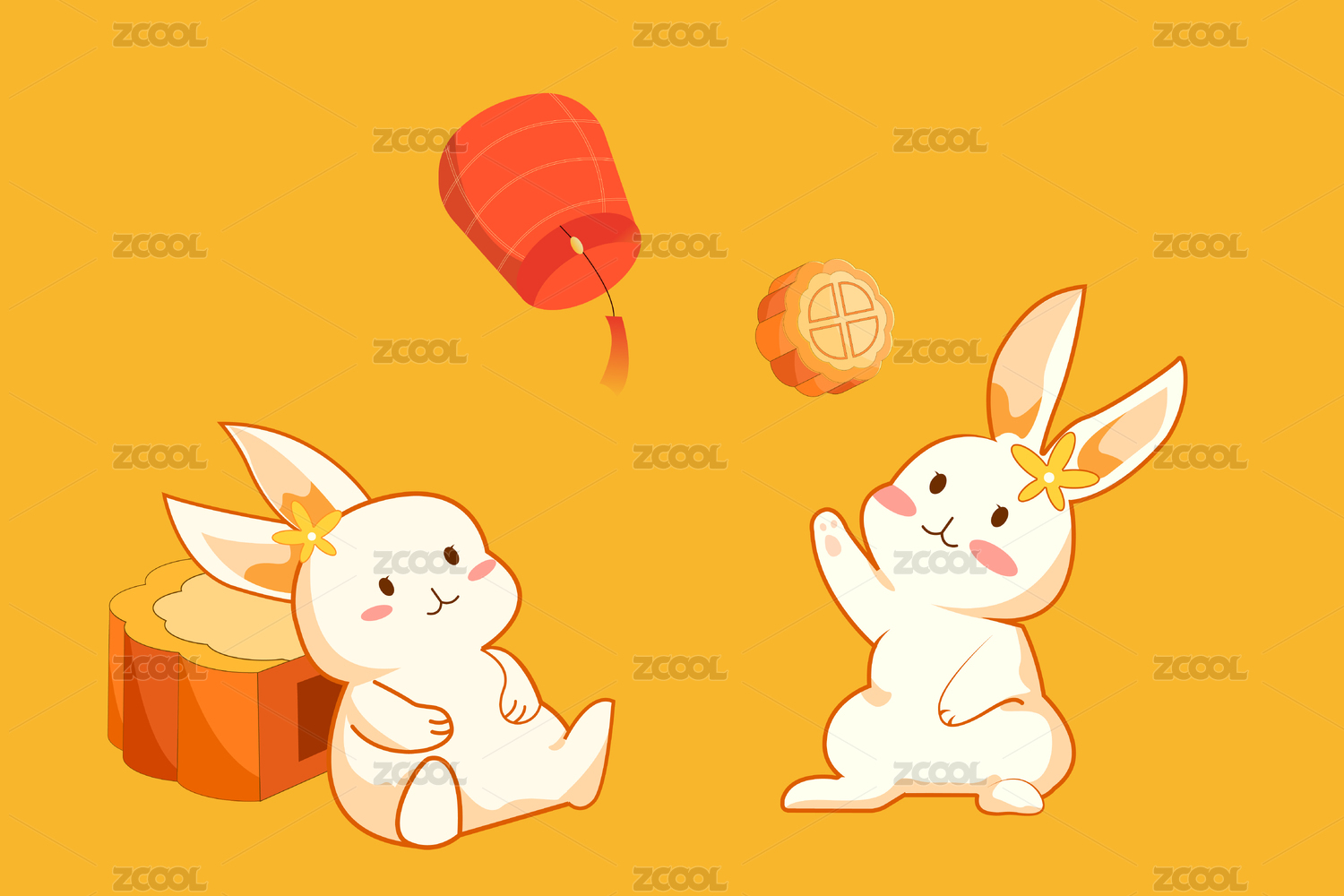 卡通可爱中秋兔子插画