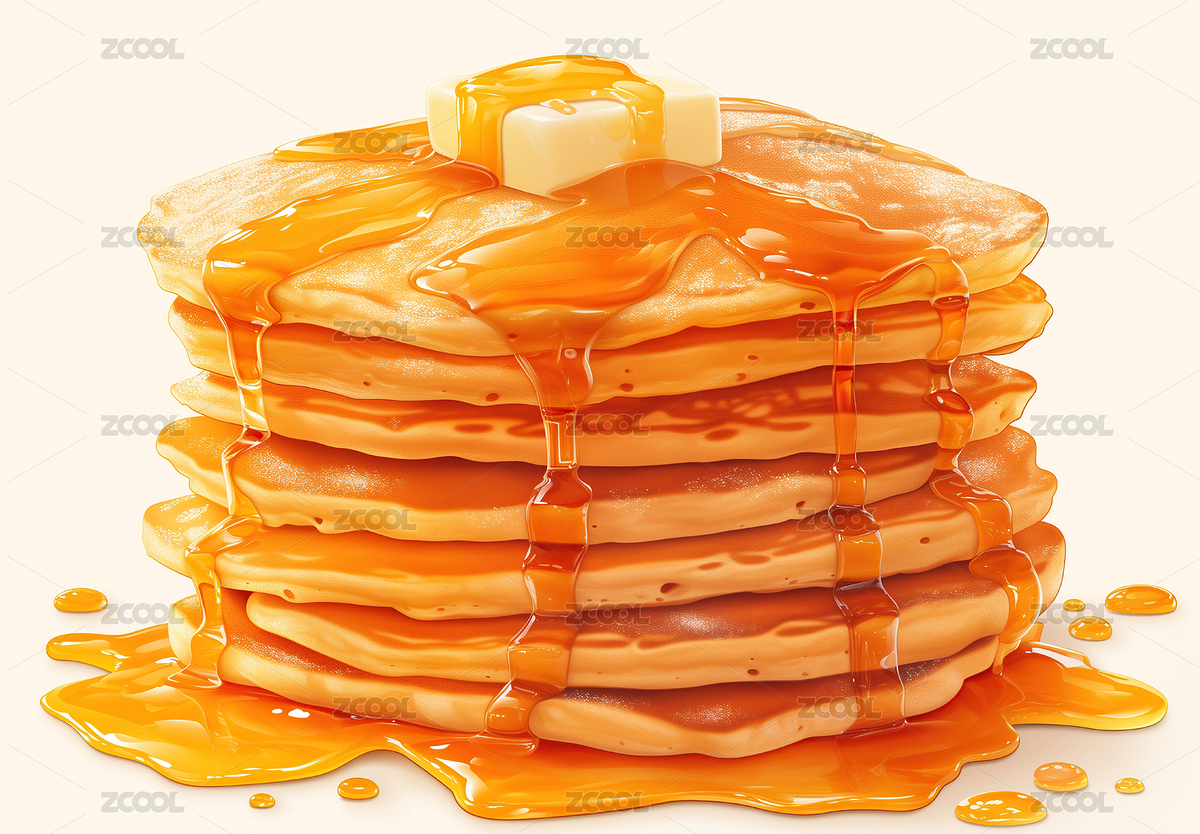 插画,插图,图像设计,黄色,舒芙蕾,蛋糕,焦糖,糖浆,芝士,食品