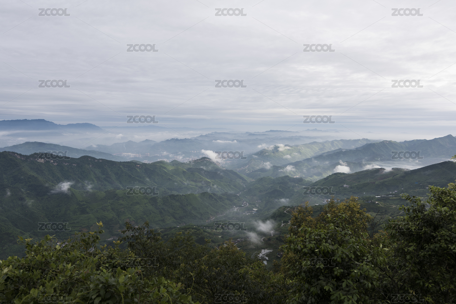 夏季重庆黑山谷旅游区茫茫群山中日落时分的云海