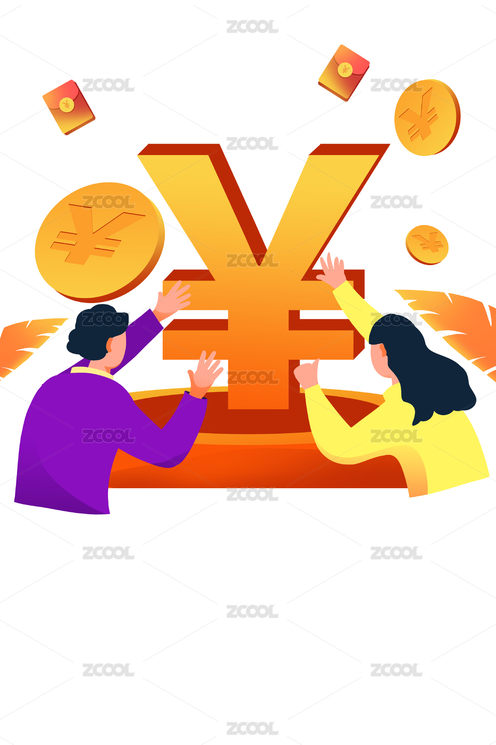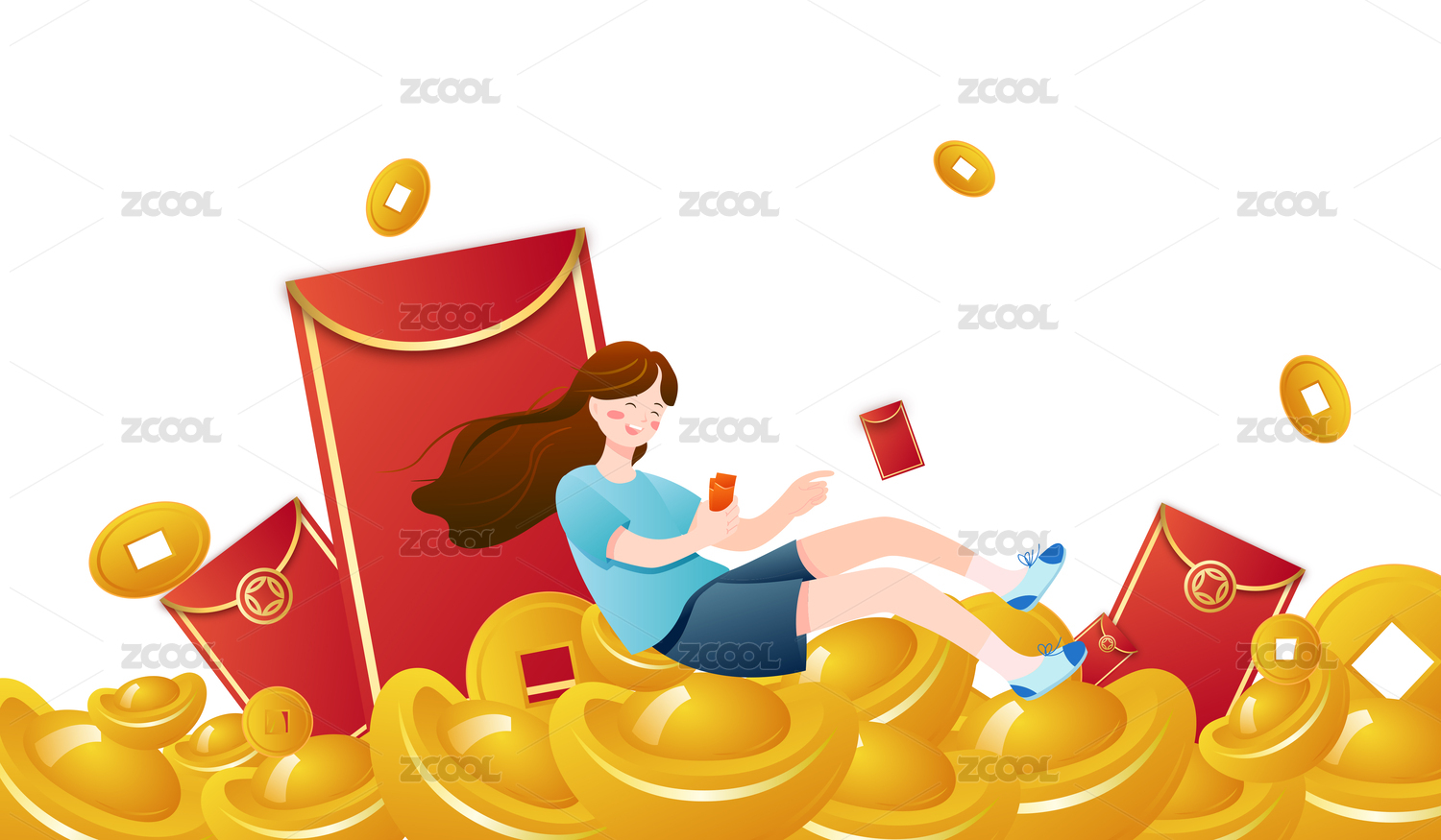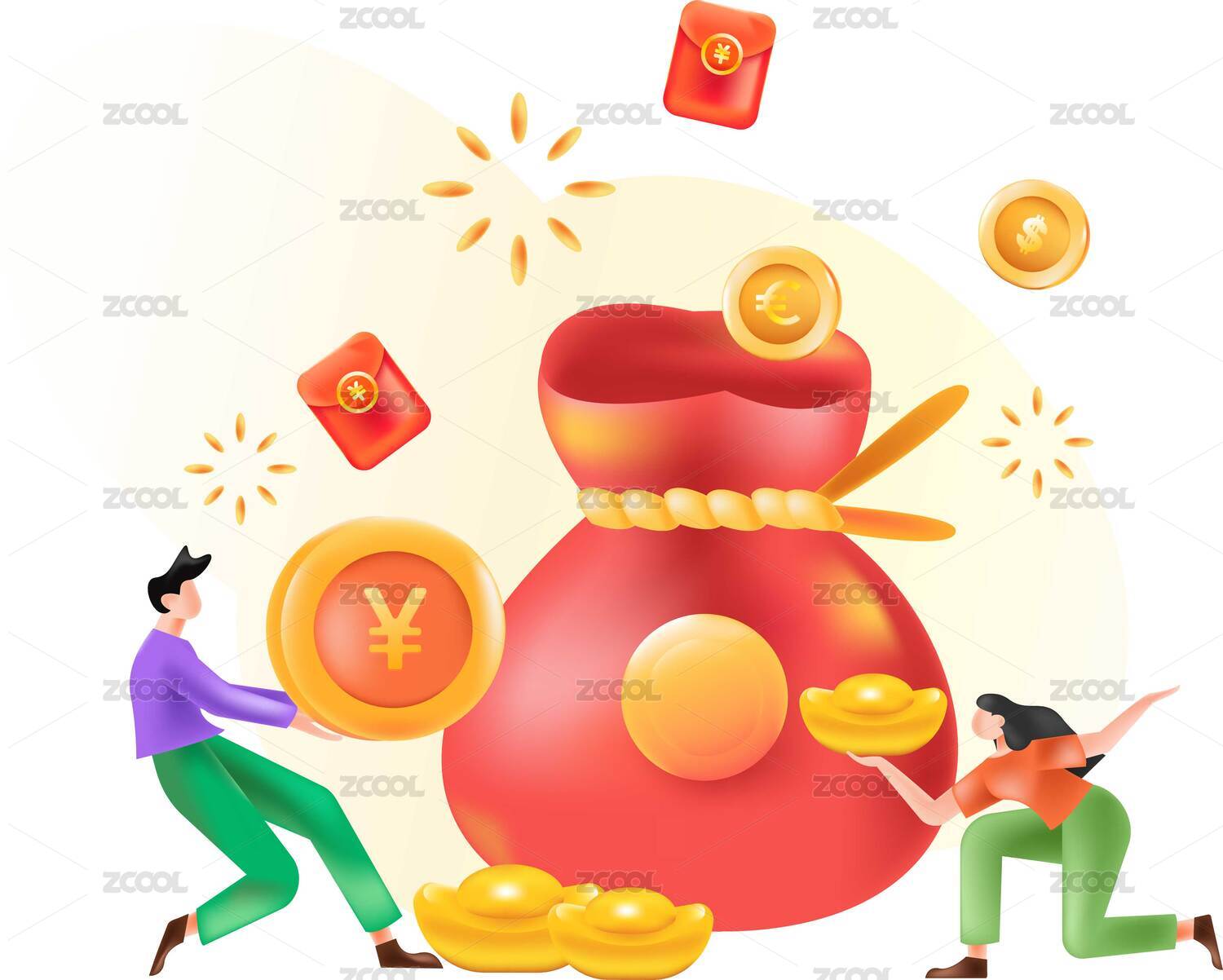 卡通手绘红包人物喜庆节日推广促销庆祝插画