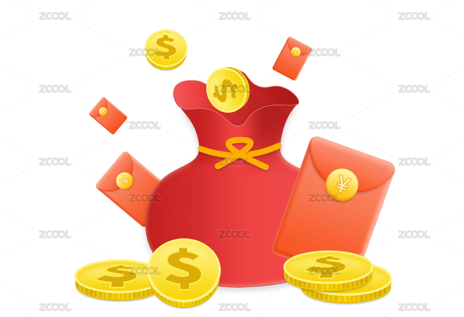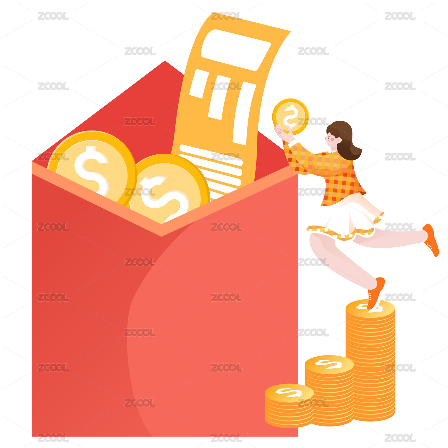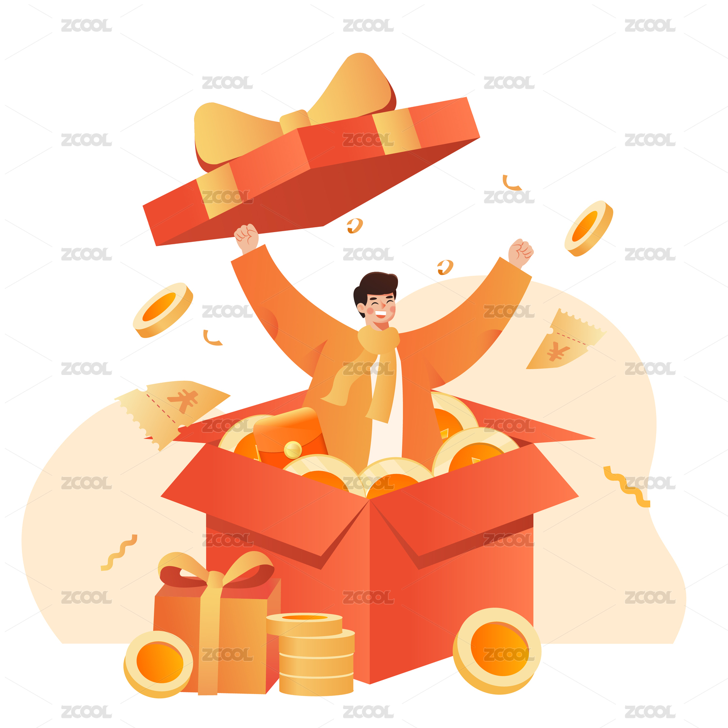 卡通手绘红包人物喜庆节日推广促销庆祝插画