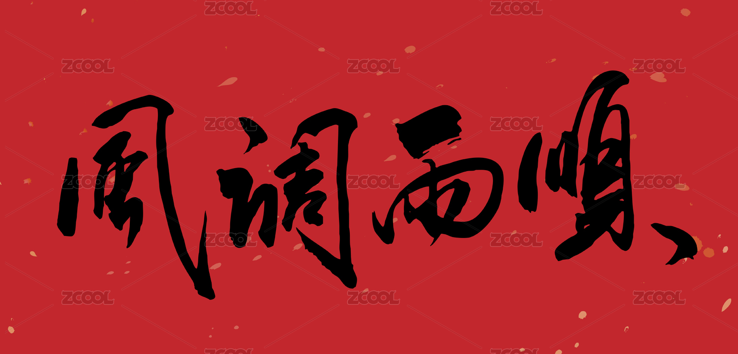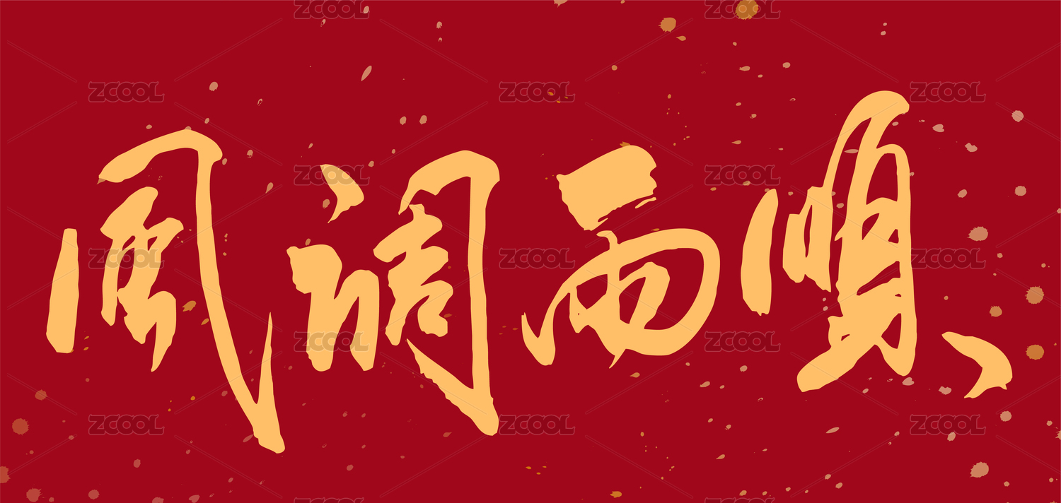 书法手写风调雨顺毛笔字的矢量图